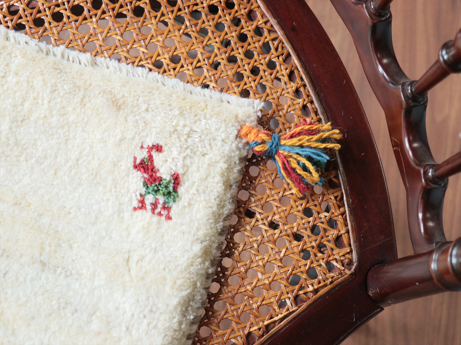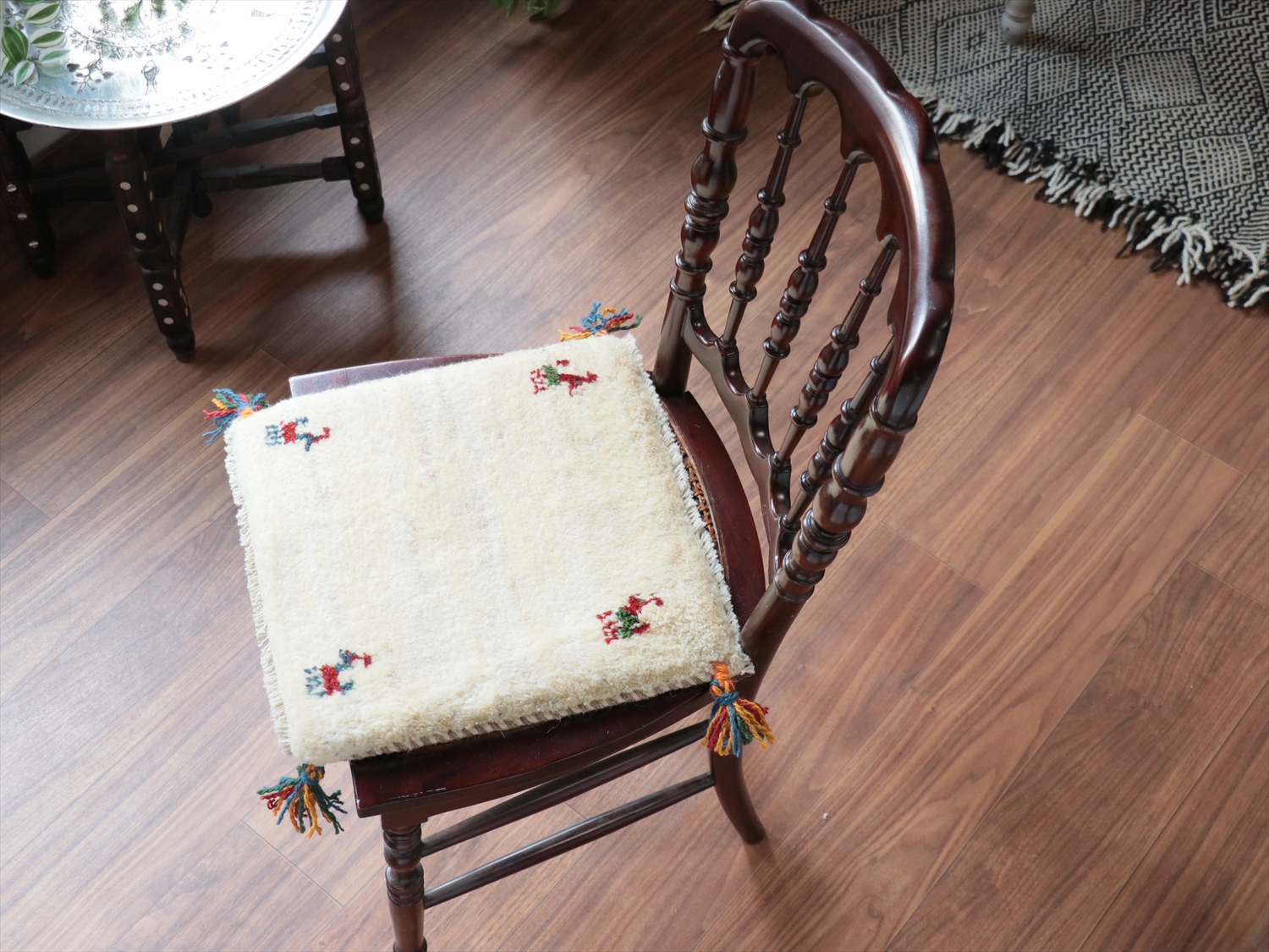 ギャッベ イラン産手織り 座布団サイズ 38x39cm ナチュラルアイボリー 無地 シンプル