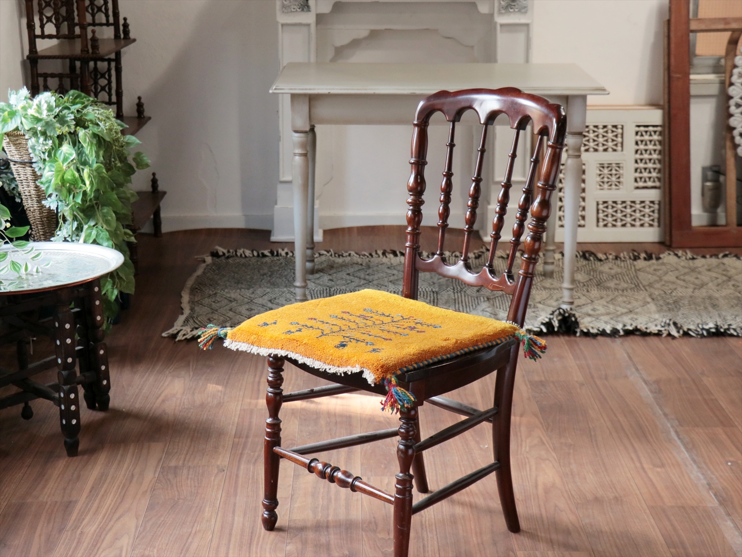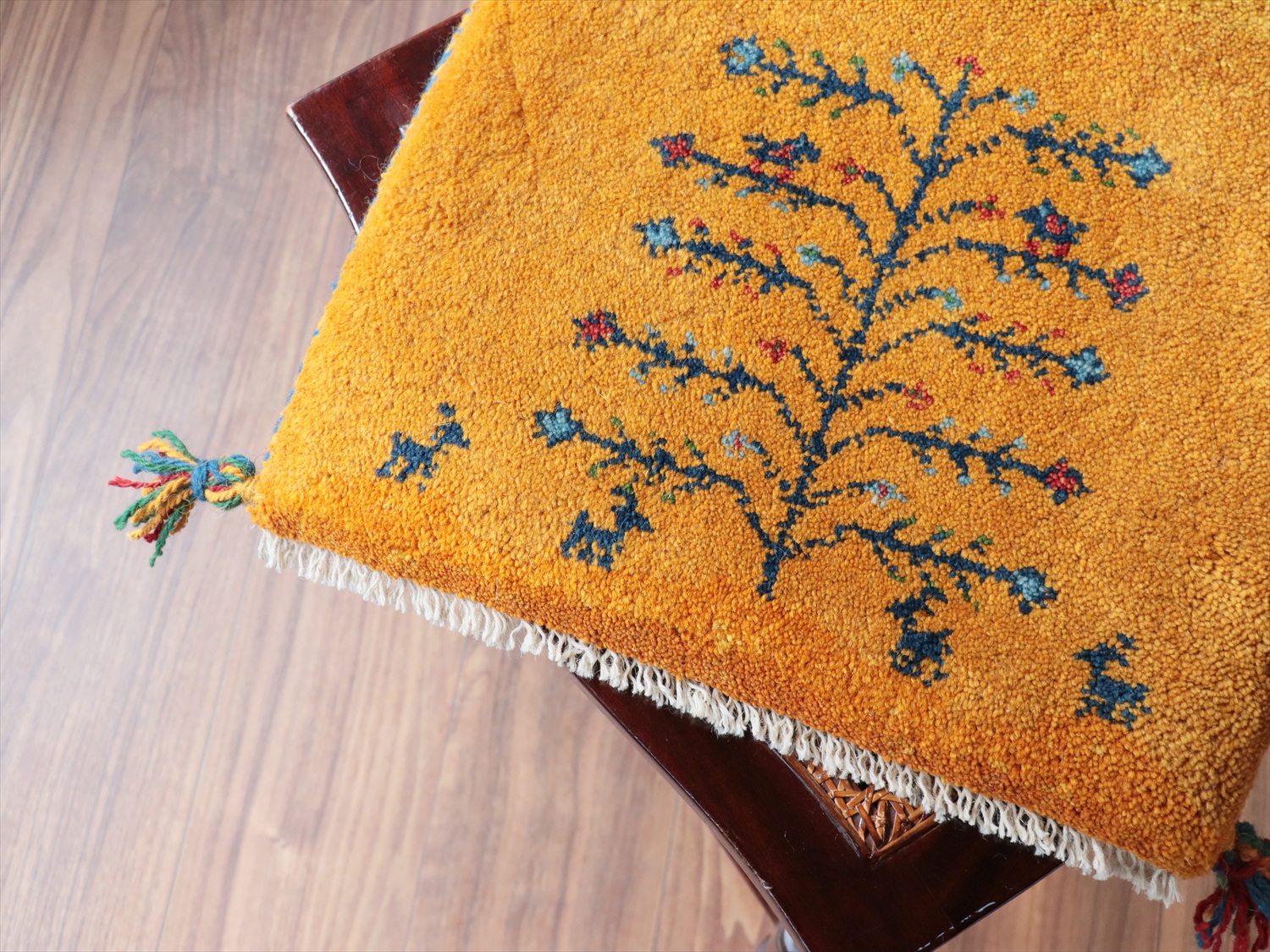 ギャッベ イラン産手織り 座布団サイズ 40x42cm イエロー 枝葉を広げる生命の木