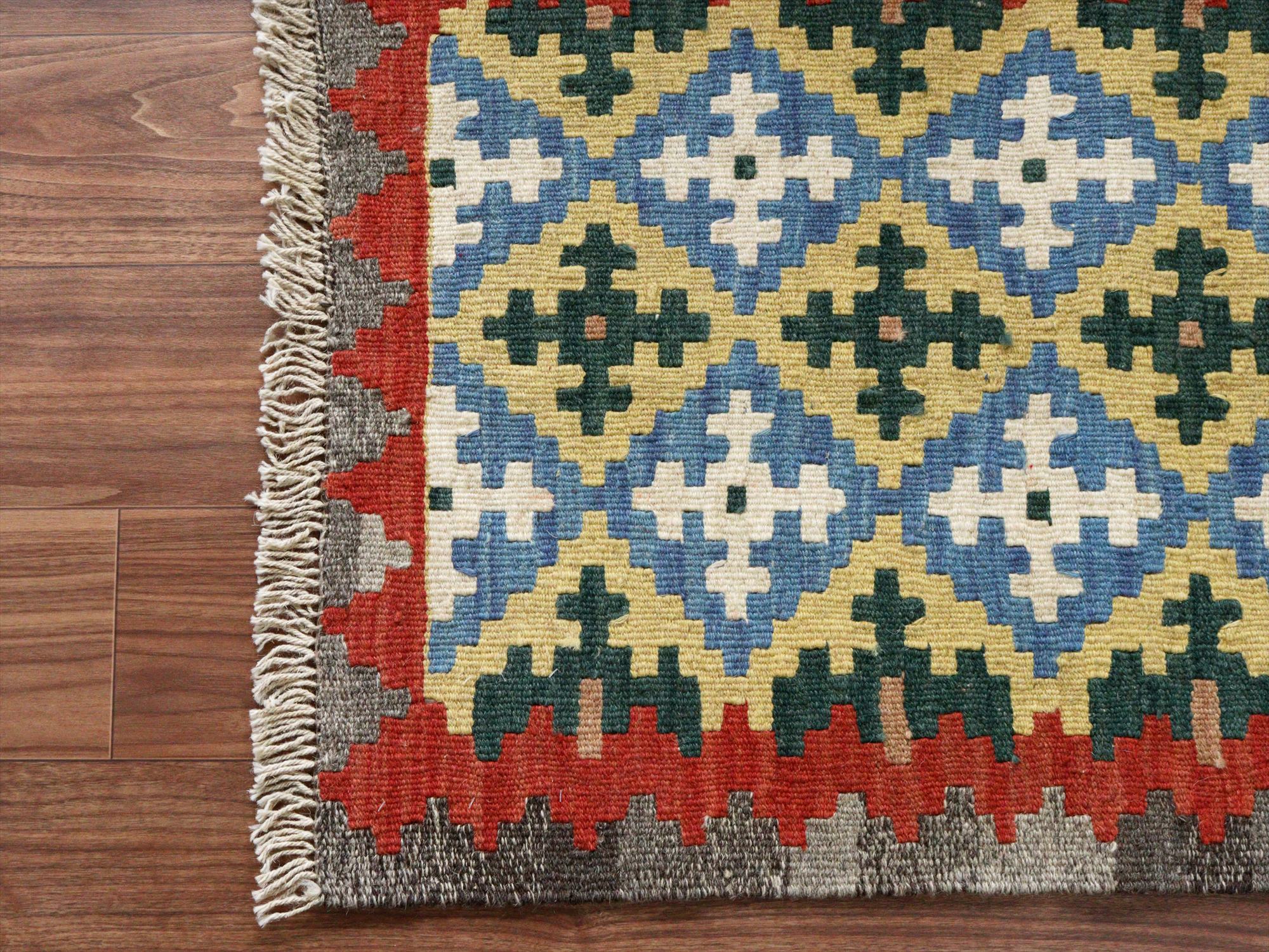 - カシュカイキリム イラン 手織り87×64cm カラフルな幾何学モチーフ