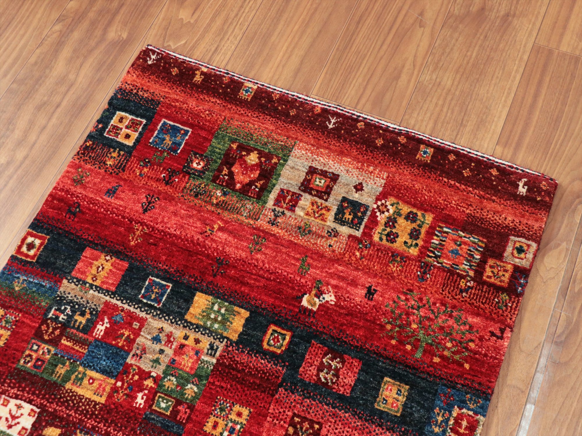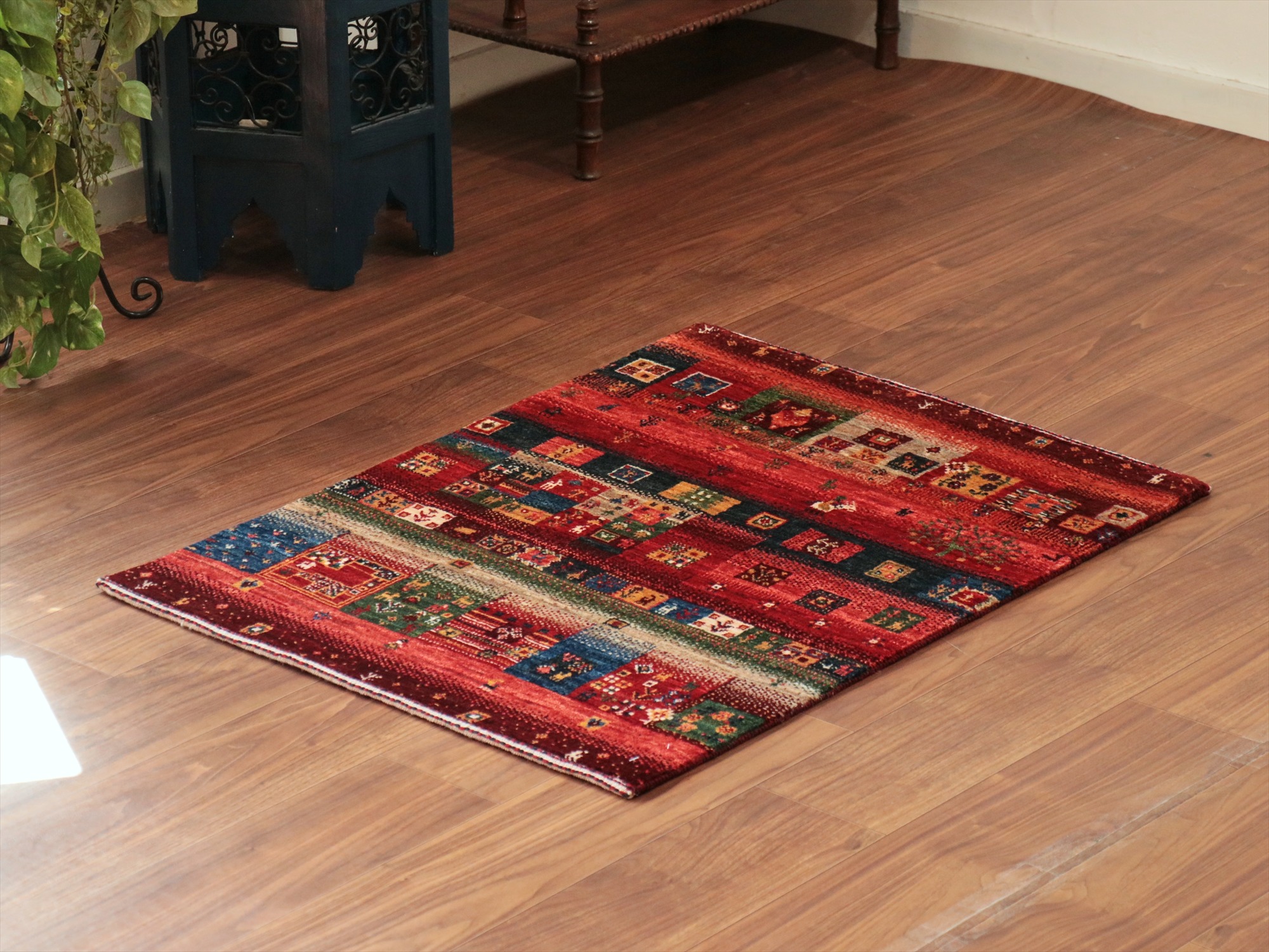 Key:Gabbeh,Nowbaft,Tribal rug, Persian carpet,Iran,Shiraz, Quashkai,Farhadian, 手織りギャッベ, 細かい, イラン直輸入, ペルシャ絨毯, 玄関マット, レッド系, 赤, カラフル, タイル柄, モザイク, 動物モチーフ, モダンデザイン, 草木染, ウール100%, ガラタバザール, 東京, 中野区