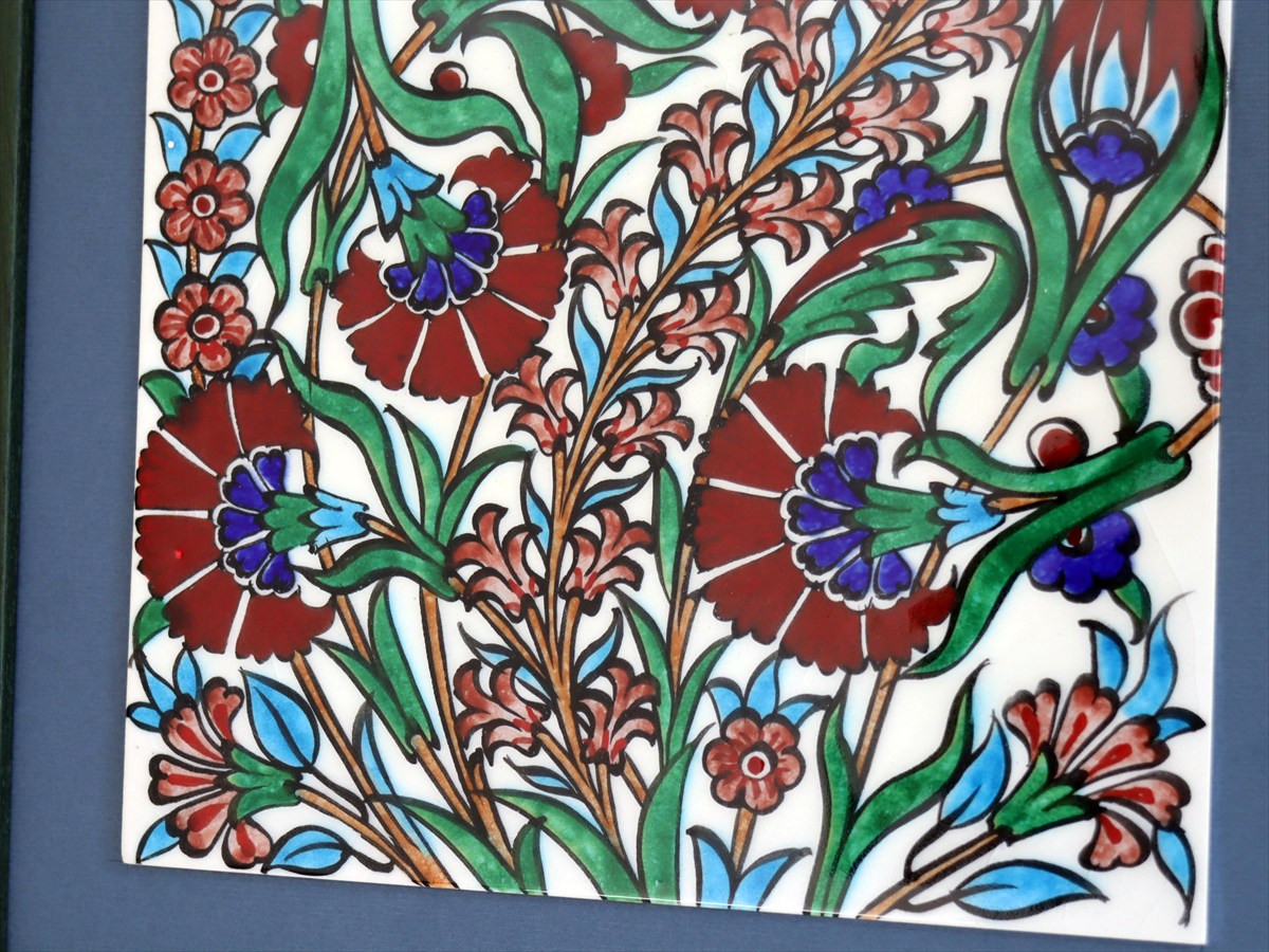 Key:タイル トルコ 陶器 イズニック キュタフヤ 手書き ハンドメイド パネル 額 インテリア 壁 ディスプレイ Iznik Tile Turkish Hand paint Handmade Ottoman Blue Mosque Kutahya