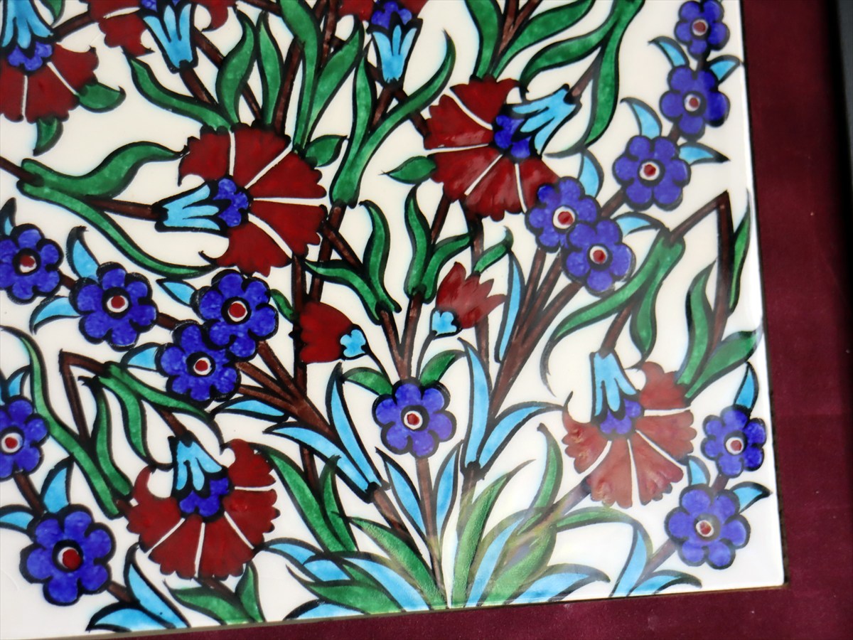 Key:タイル トルコ 陶器 イズニック キュタフヤ 手書き ハンドメイド パネル 額 インテリア 壁 ディスプレイ Iznik Tile Turkish Hand paint Handmade Ottoman Blue Mosque Kutahya