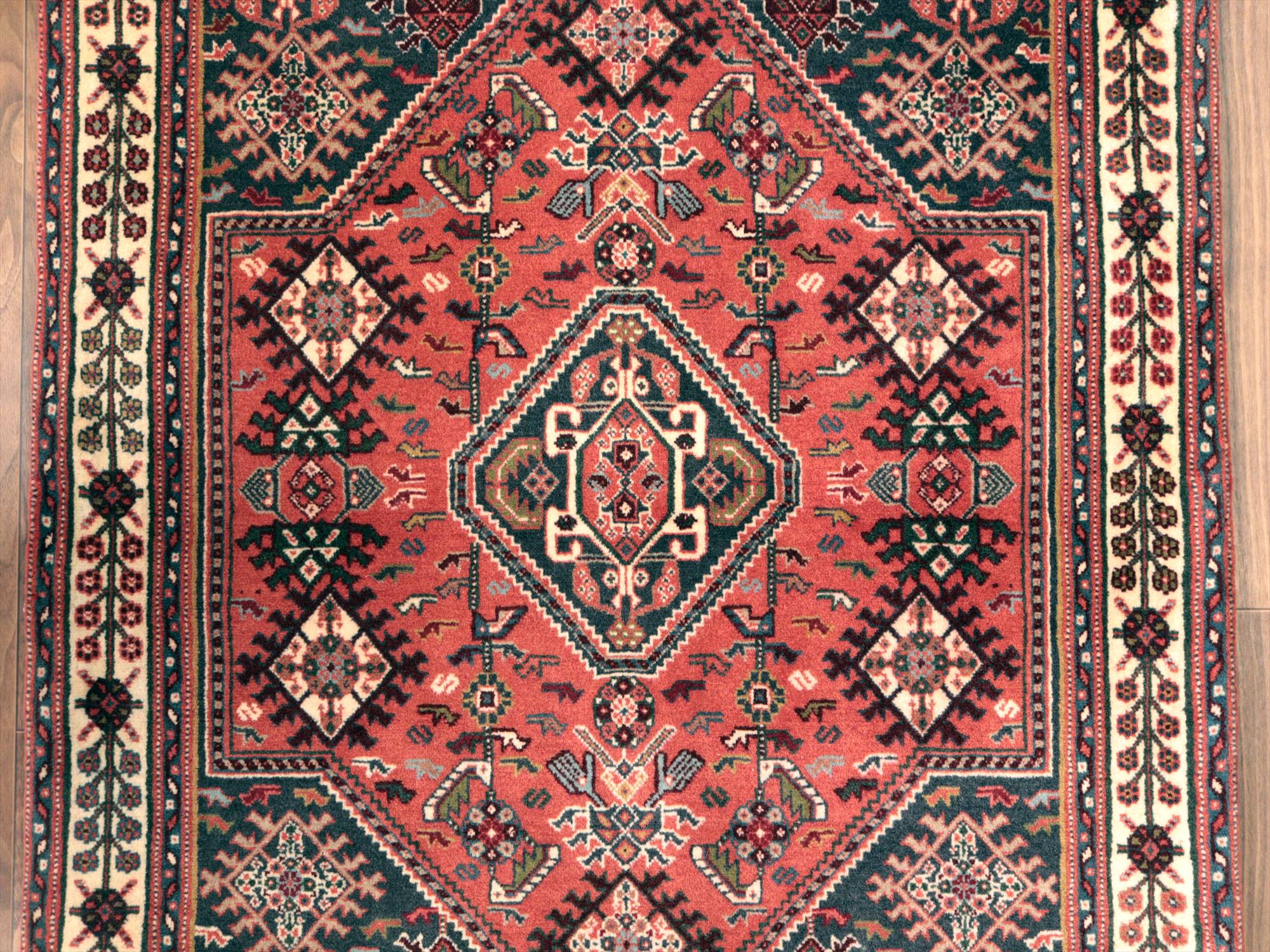 - 六角メダリオン 部族絨毯125×82cm カシュカイ族の手織りラグ カシュクーリ