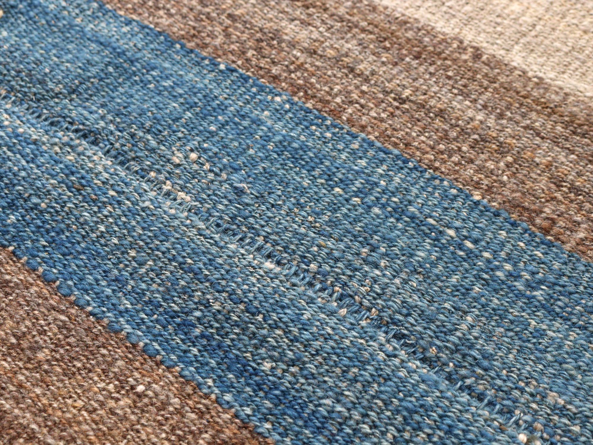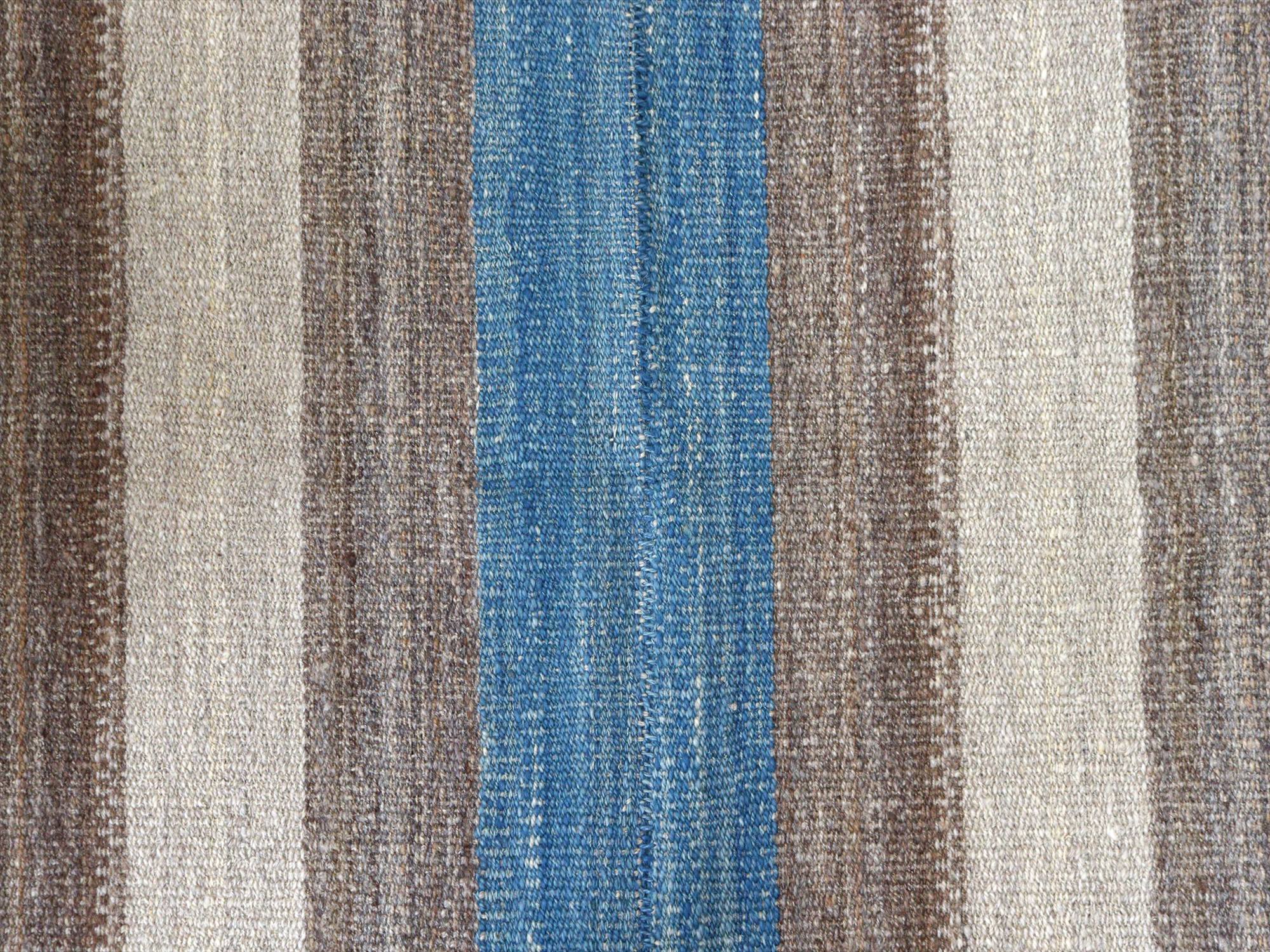 トルコ北東部、カルス地方で織られたキリム。アイボリーとブラウン、グレーの組み合わせで、ストライプが表現されたシンプルなデザイン。