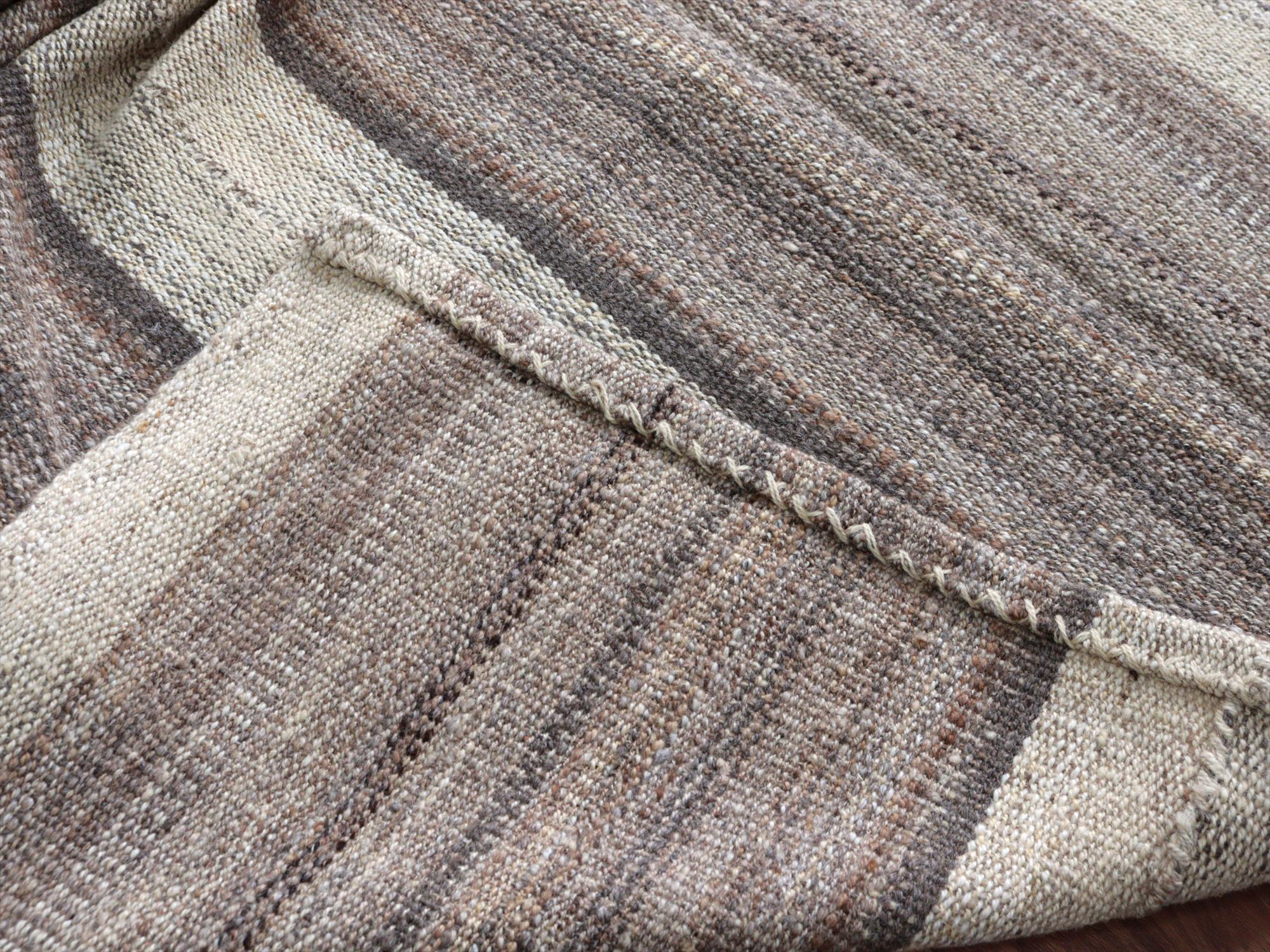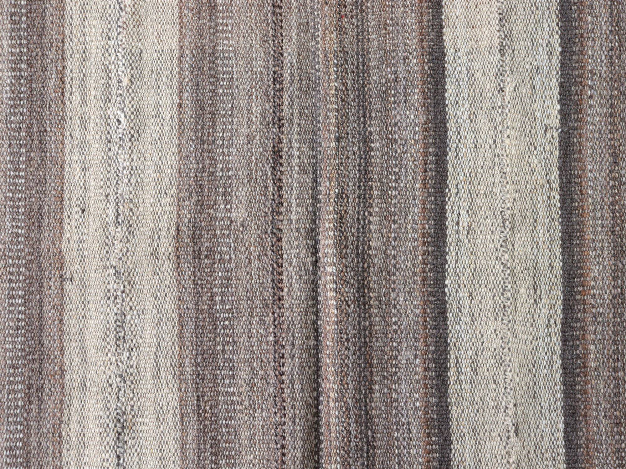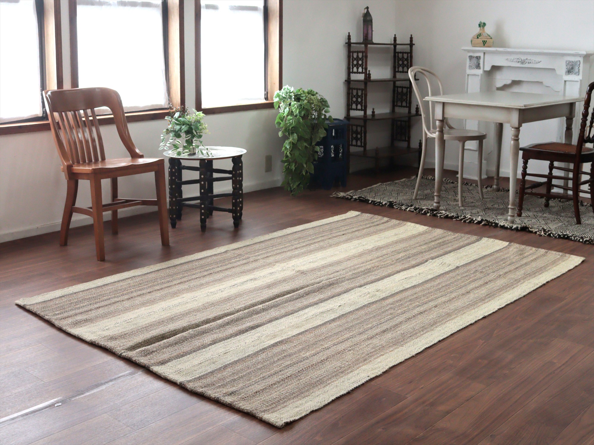 トルコ北東部、カルス地方で織られたキリム。ブラウンとグレー、アイボリーの組み合わせで、ストライプが表現されたシンプルなデザイン。