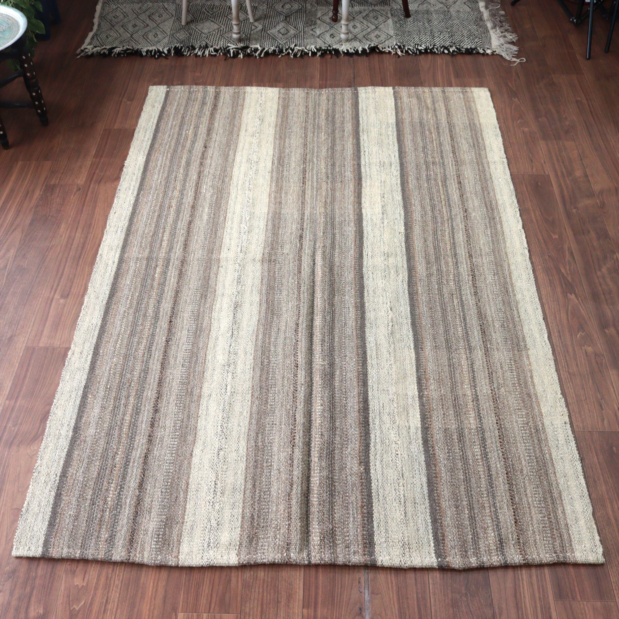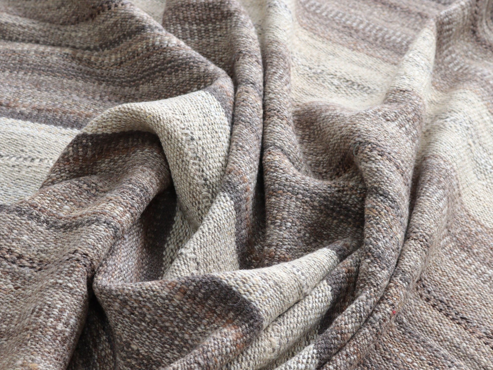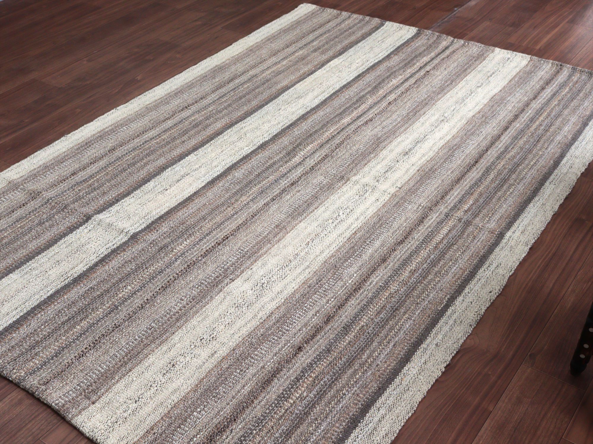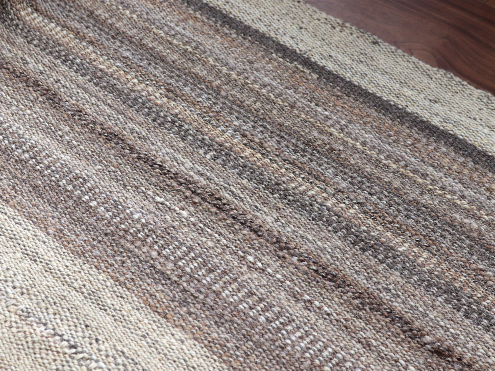トルコ北東部、カルス地方で織られたキリム。ブラウンとグレー、アイボリーの組み合わせで、ストライプが表現されたシンプルなデザイン。
