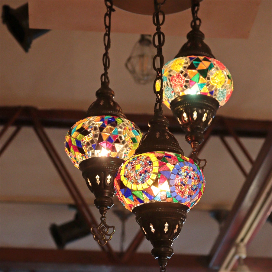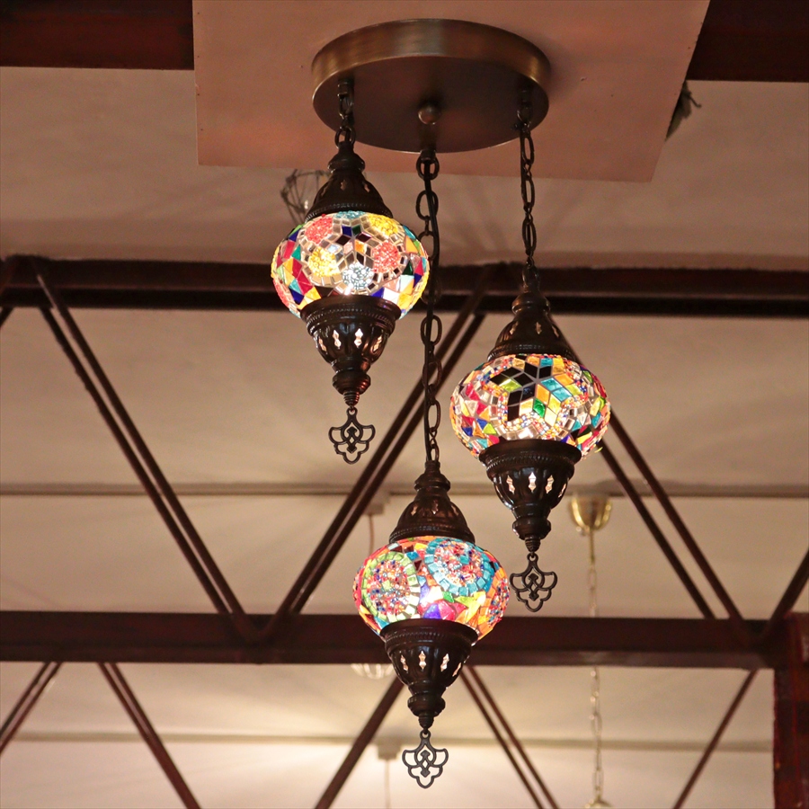 モザイクランプ トルコランプ シャンデリア 3灯 全高60cm 直径27cm カラフルミックス 【天井工事必要】