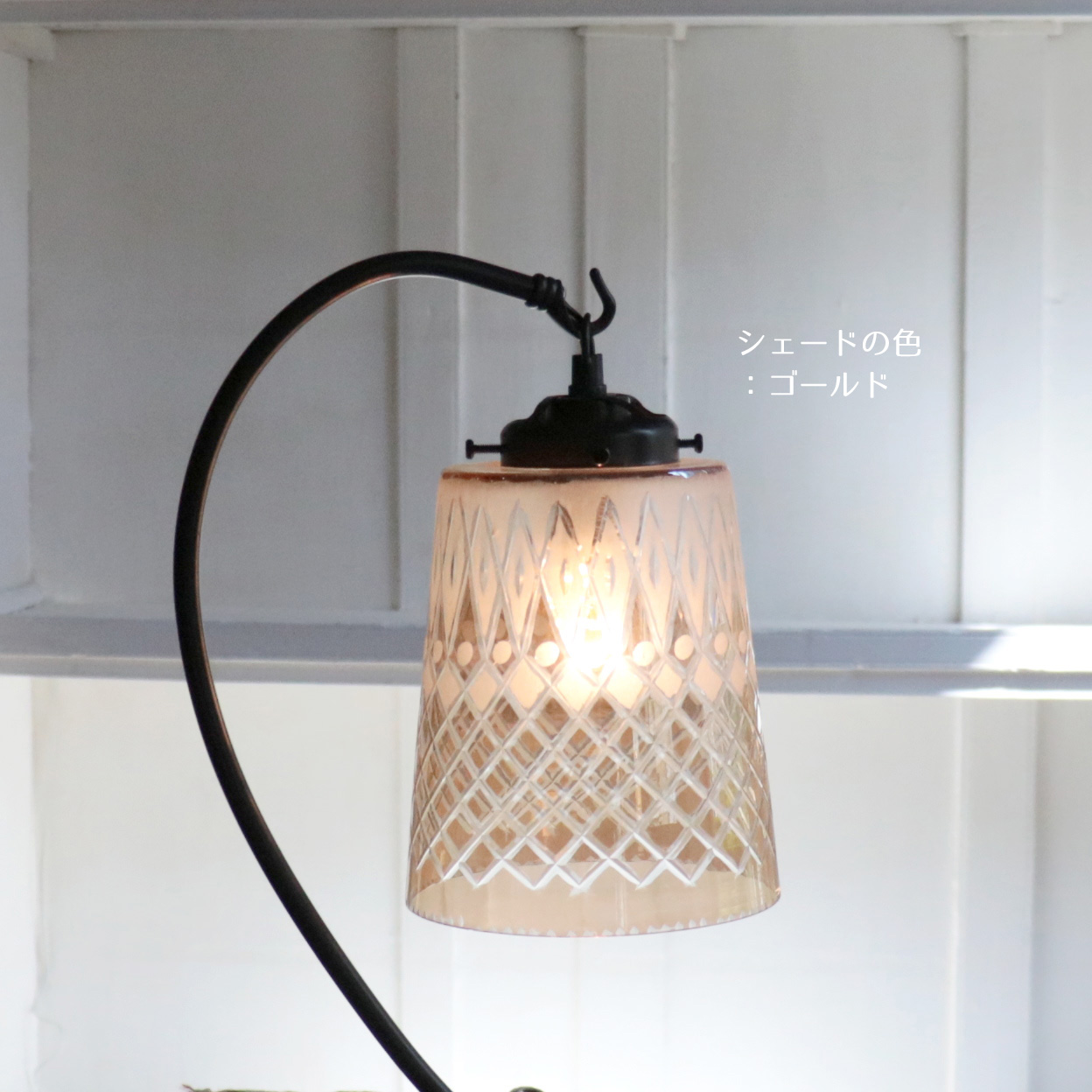 Key:ガラスシェード ガラスランプ レトロ アンティーク ヴィンテージ 手作り インド コロニアル様式 コロニアルスタイル 植民地様式 ペンダントシェード アンティークガラス シェード 切子 カットガラス ラスター ゴールド