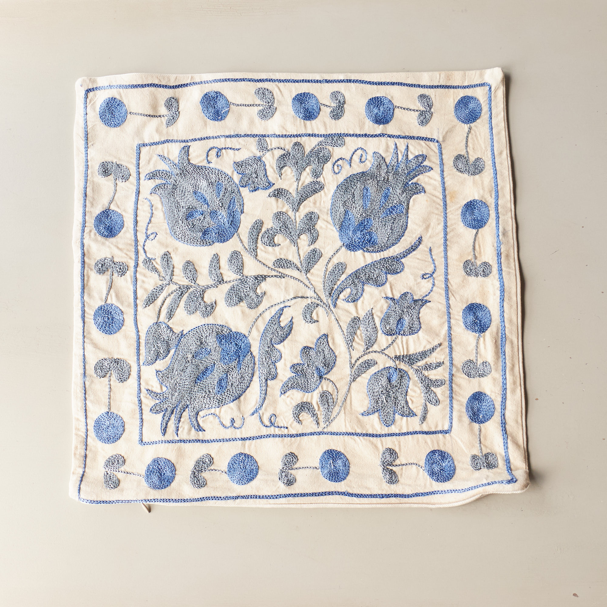 - スザンニ刺繍 クッションカバー46×45cm ウズベキスタン Suzani スザニ ザクロの実