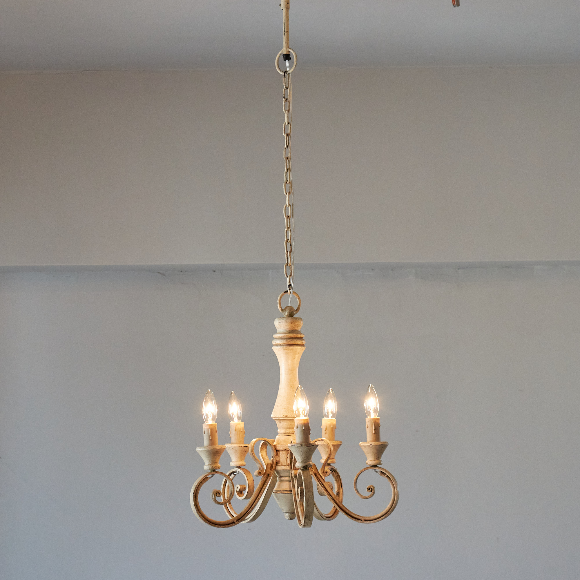 アイアン/ウッド シャンデリア 5灯 キャンドル CASTLE AGE ホワイト アンティーク