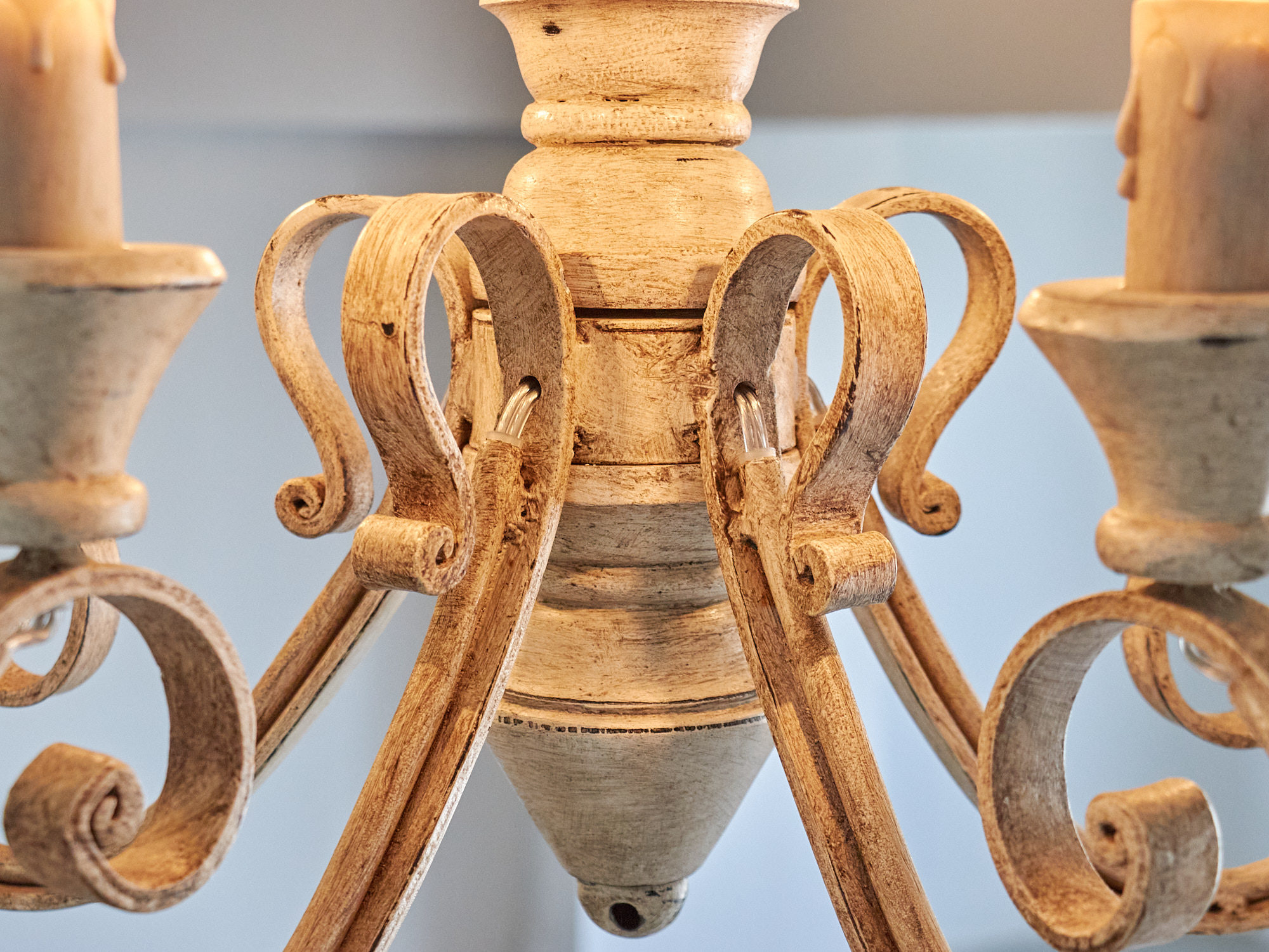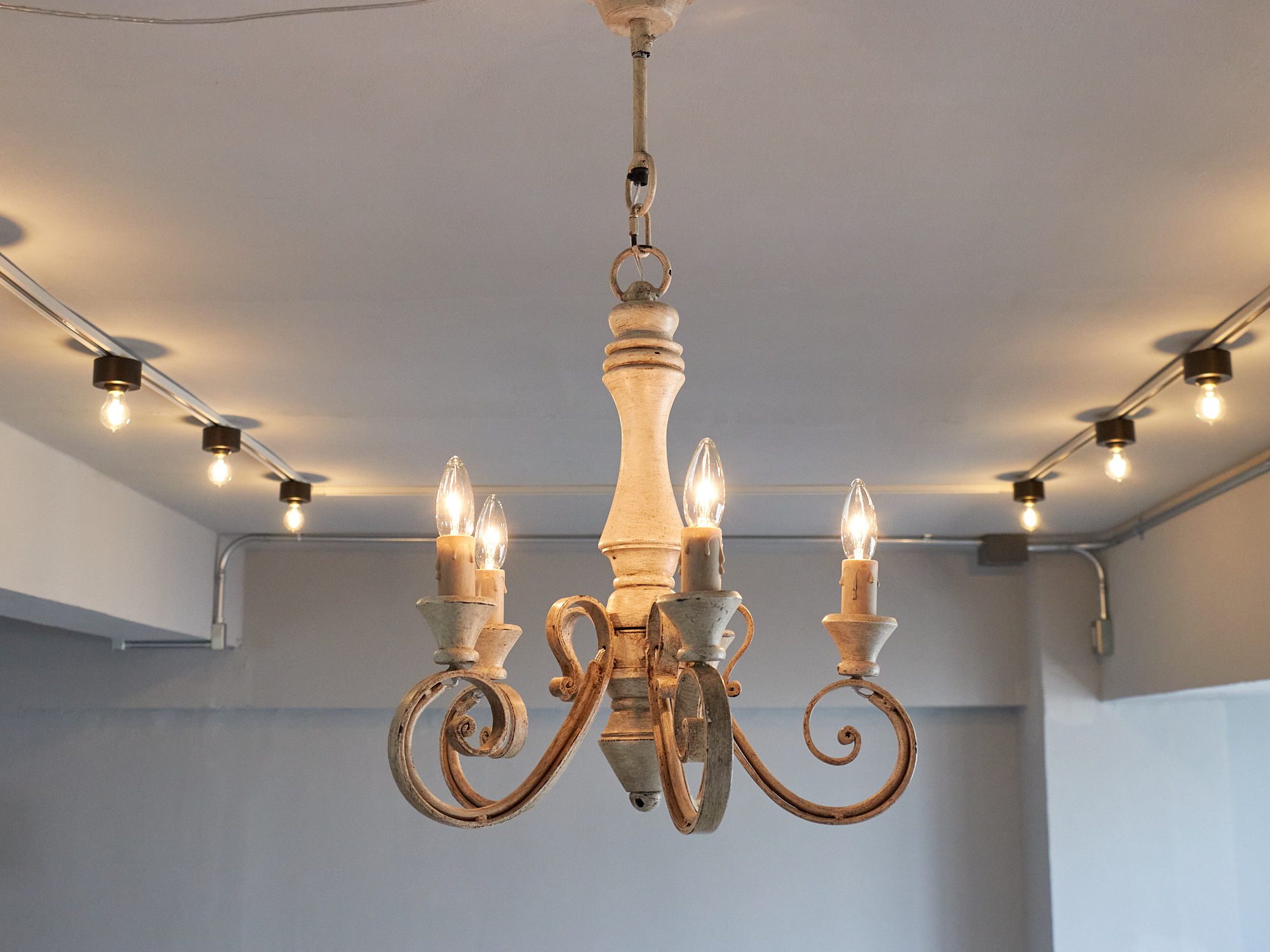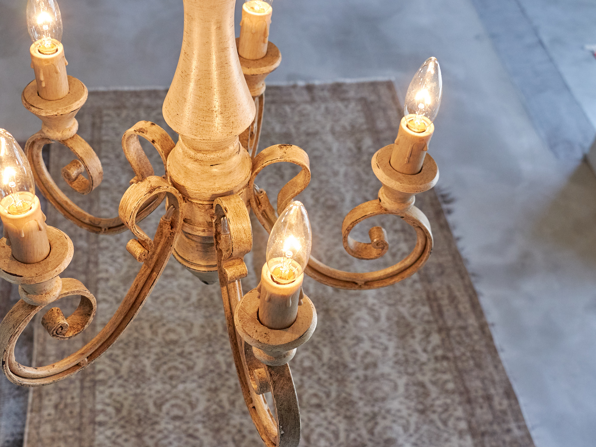 - アイアン/ウッド シャンデリア 5灯 キャンドル CASTLE AGE ホワイト アンティーク