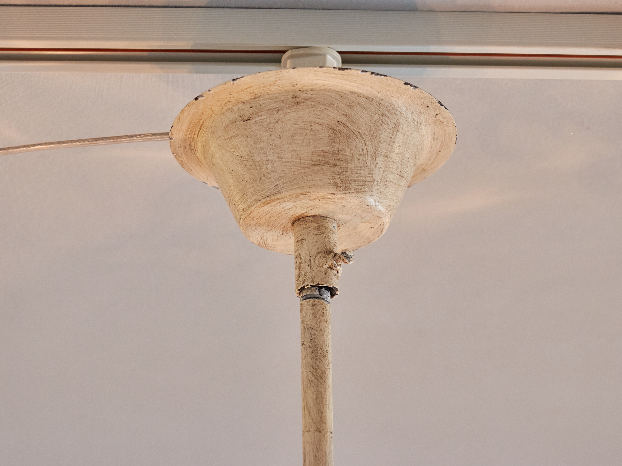 【設置について】リアルなアンティークを追及した商品です。天井部分は、大きなフランジカップがついていますが、日本の天井引っ掛けシーリングには対応してないため、天井での電気工事が必要です。また、シャンデリアを吊るアイアンチェーンも、長さの調整は45cmまたは90cmの2段階です。