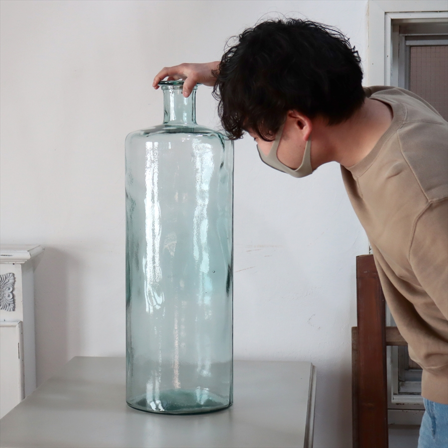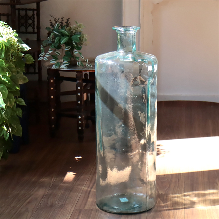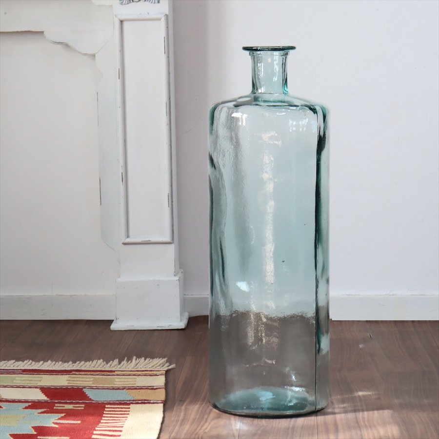 リサイクルガラス フラワーベース 高さ75cm 直径25cm スペイン製 花瓶 インテリアボトル DIECISIETE