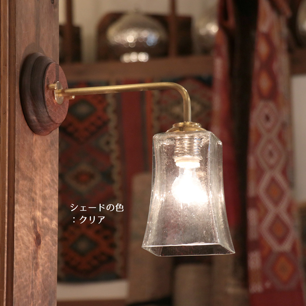 - ウォールランプ ガラスシェード/真鍮&ウッドコロニアル ルーク クリア 要電源工事