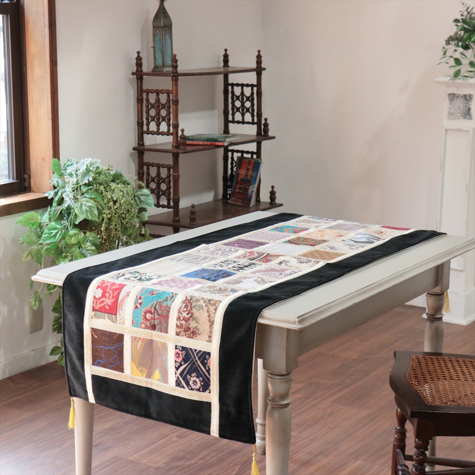 - テーブルランナー モザイクパッチワーク 142x50cmサイズ シュニール素材