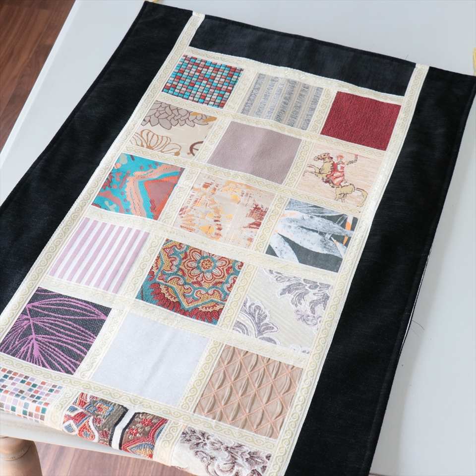 テーブルランナー モザイクパッチワーク 142x50cmサイズ シュニール素材