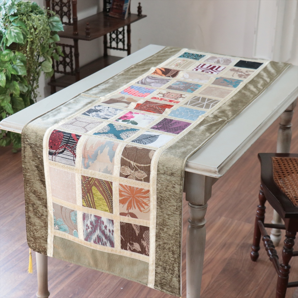 テーブルランナー モザイクパッチワーク 142x50cmサイズ シュニール素材