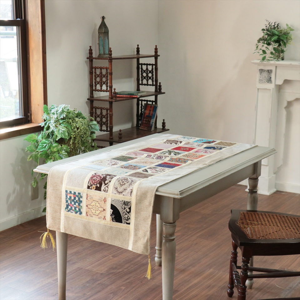 テーブルランナー モザイクパッチワーク 142x50cmサイズ シュニール素材