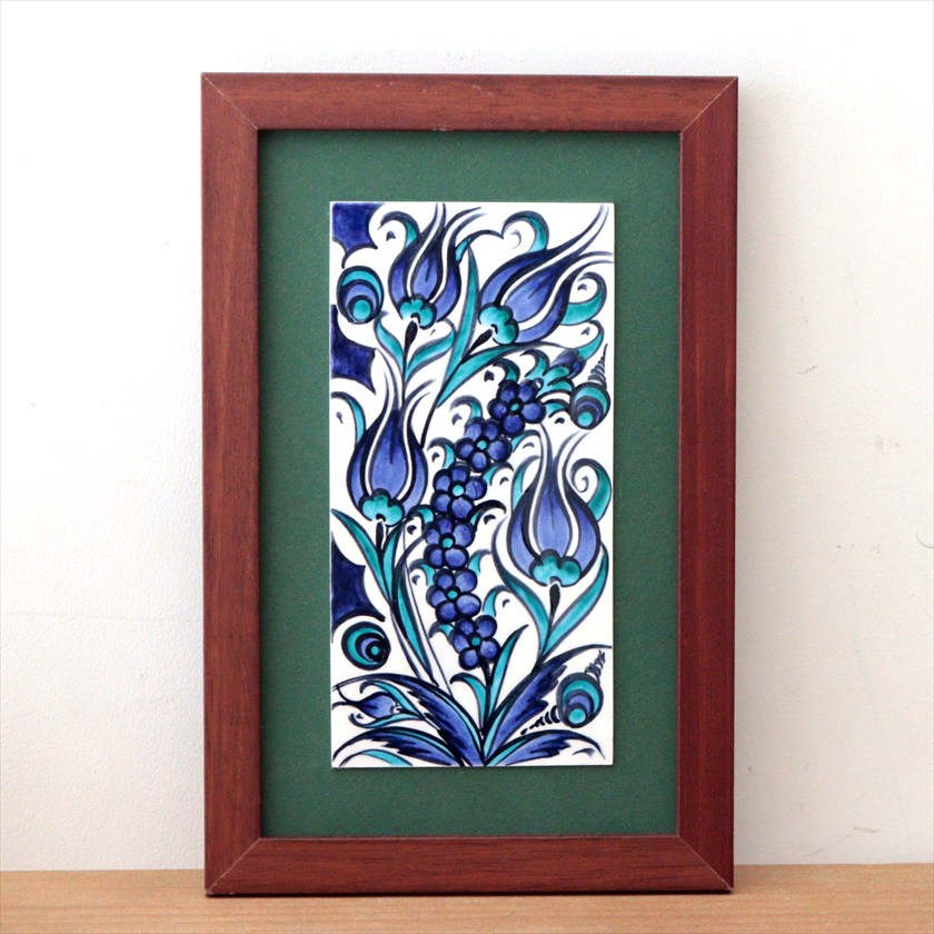 手書きタイル トルコ陶器 ミニタイル1枚額 H29×W19×D1.5cm ブルーチューリップ Turkish Hand Paint Tilex