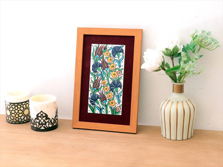 手書きタイル トルコ陶器 ミニタイル1枚額 H29×W19×D1.5cm チューリップ&カーネーション Turkish Hand Paint Tile
