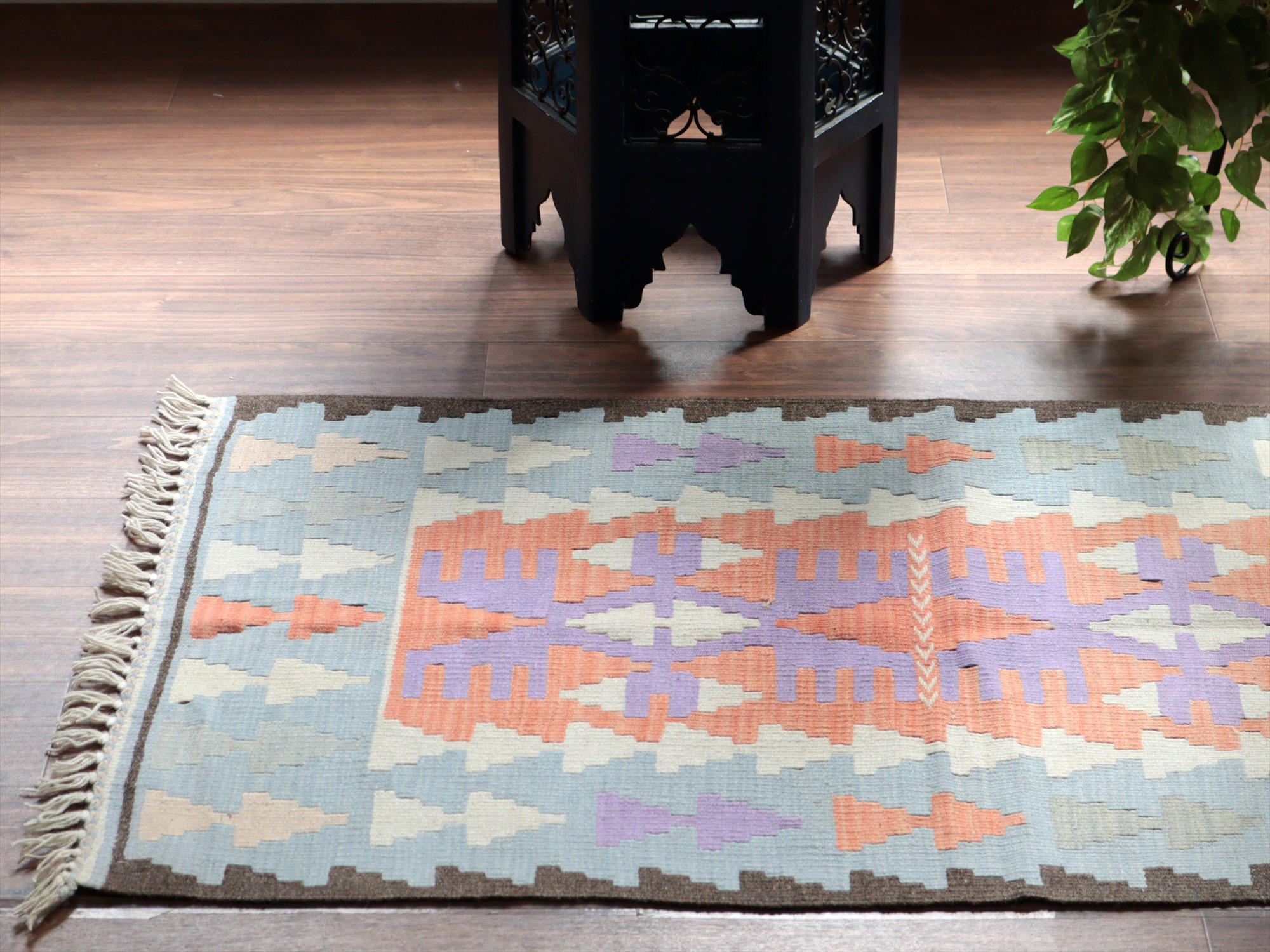 カイセリ産手織りキリム127×79cm パステルカラー トルコの手織りラグ