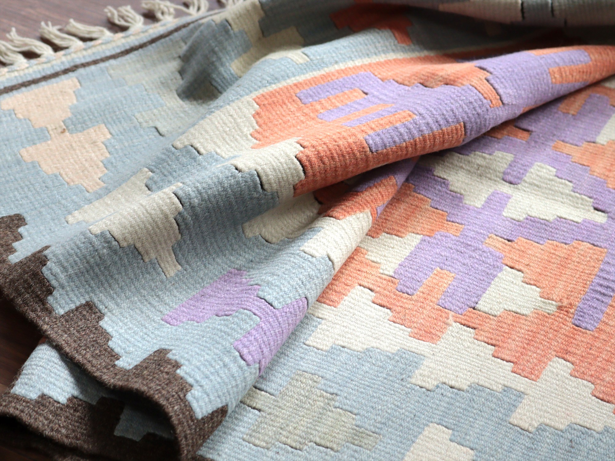 - カイセリ産手織りキリム127×79cm パステルカラー トルコの手織りラグ