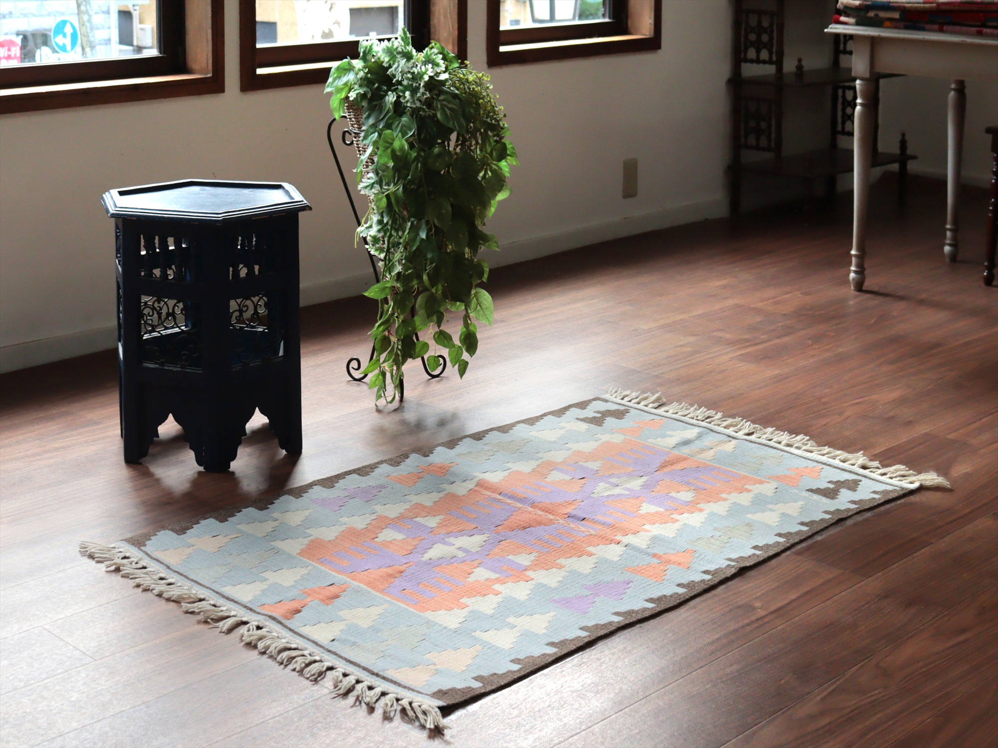 key:Turkish Rug, Turkish Carpet, Handmade, Hand knotted, wool rug, Trial rug, BOHO, BO-HO, トルコキリム, 平織り, 民藝, ハンドメイド, クラフト, 手織り, 一点もの, 現品販売, ウール, ガラタバザール