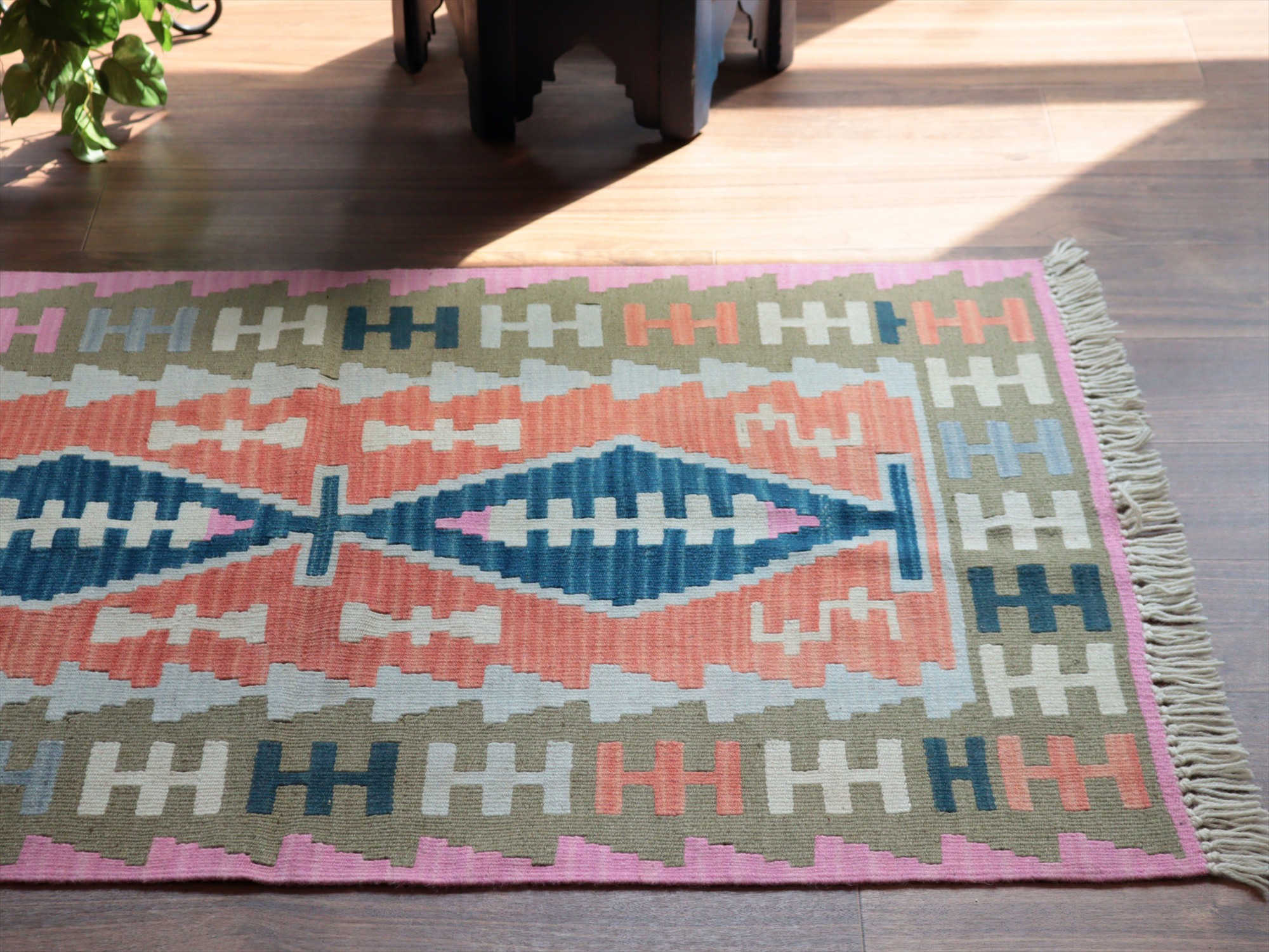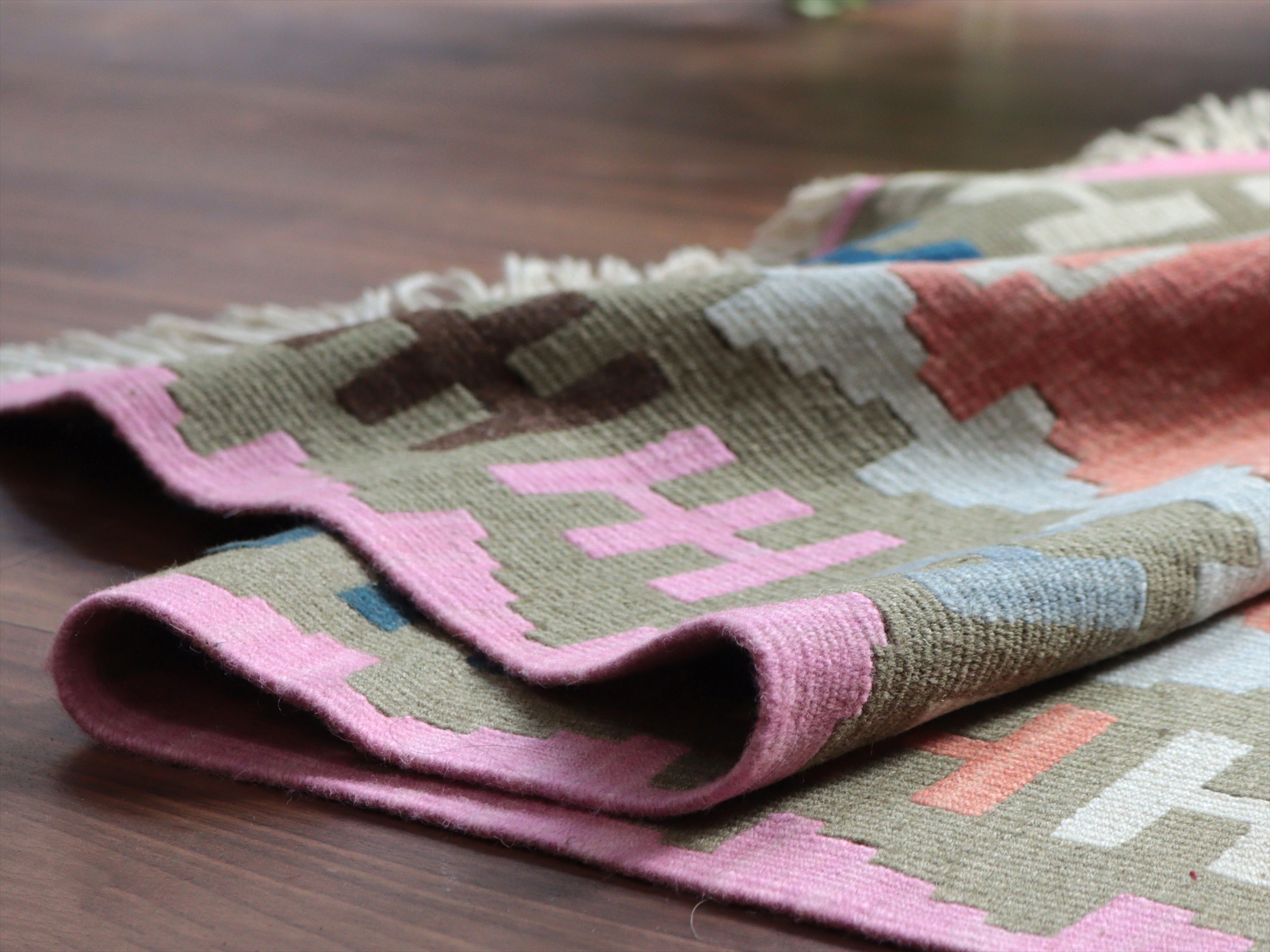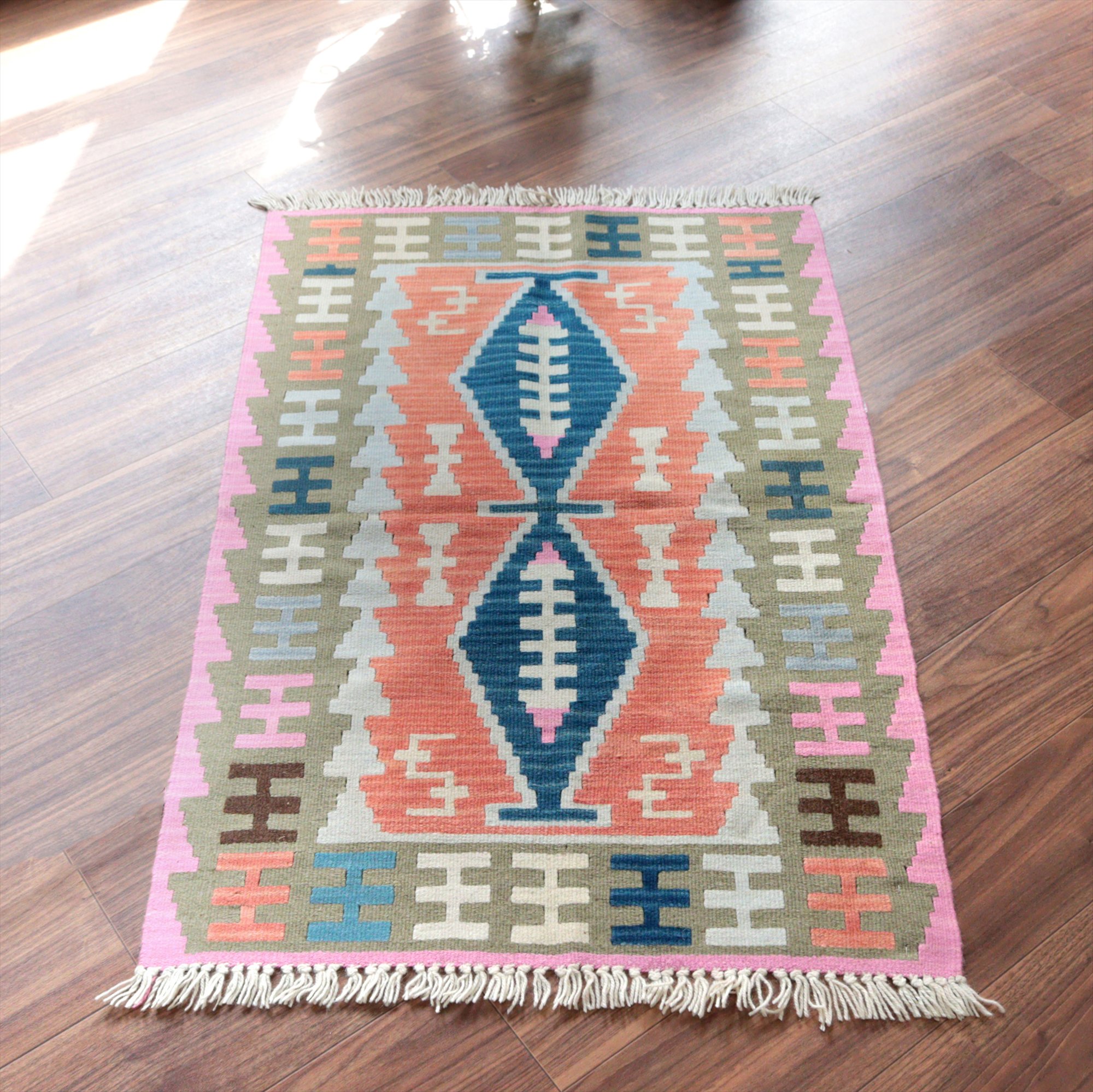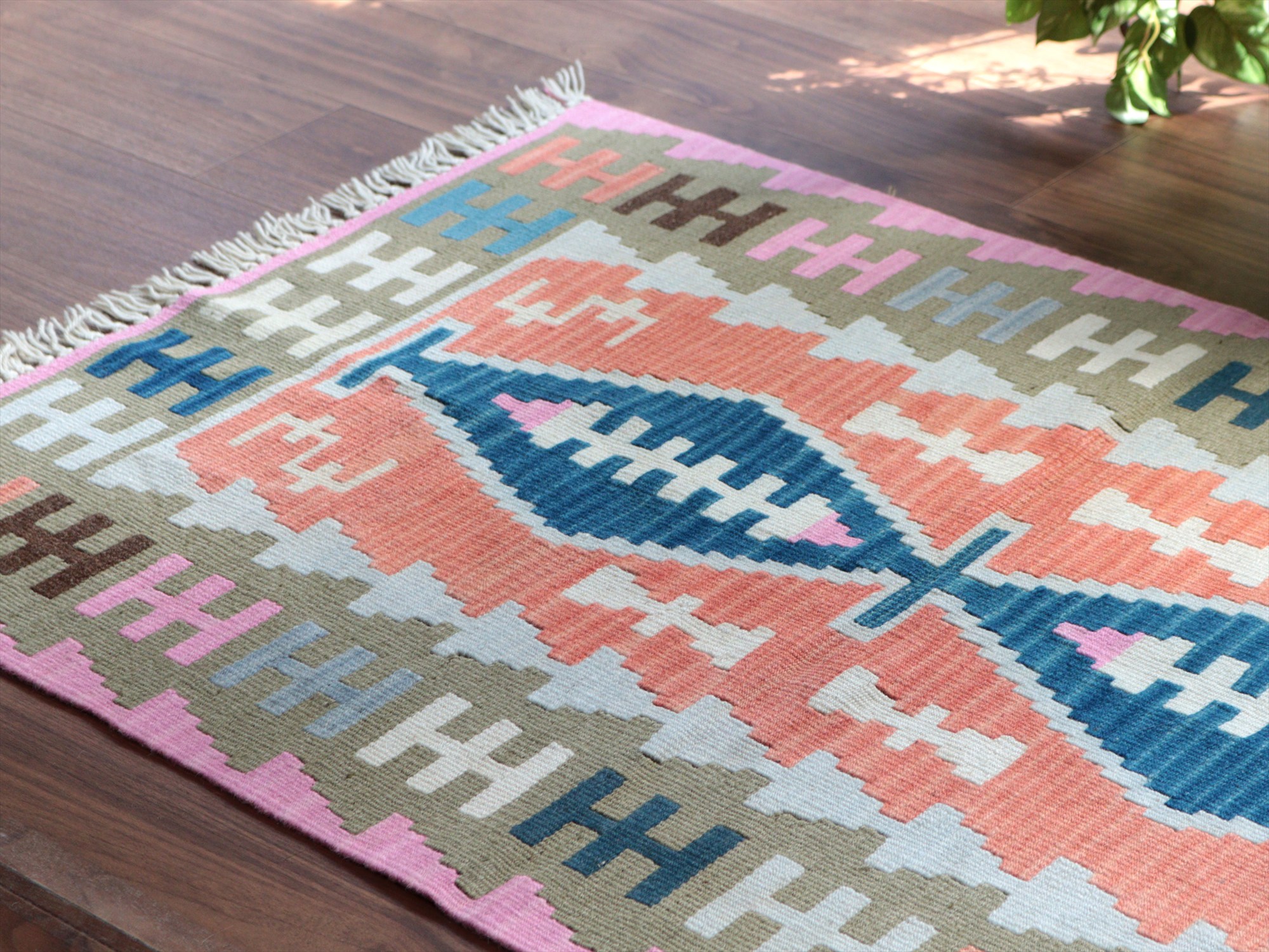 - カイセリ産手織りキリム116×76cm パステルカラー トルコの手織りラグ