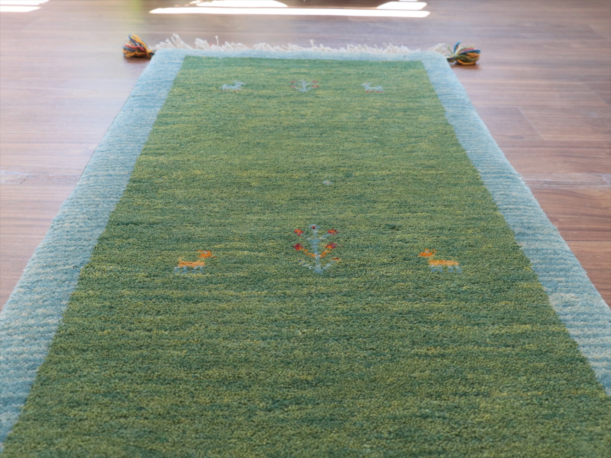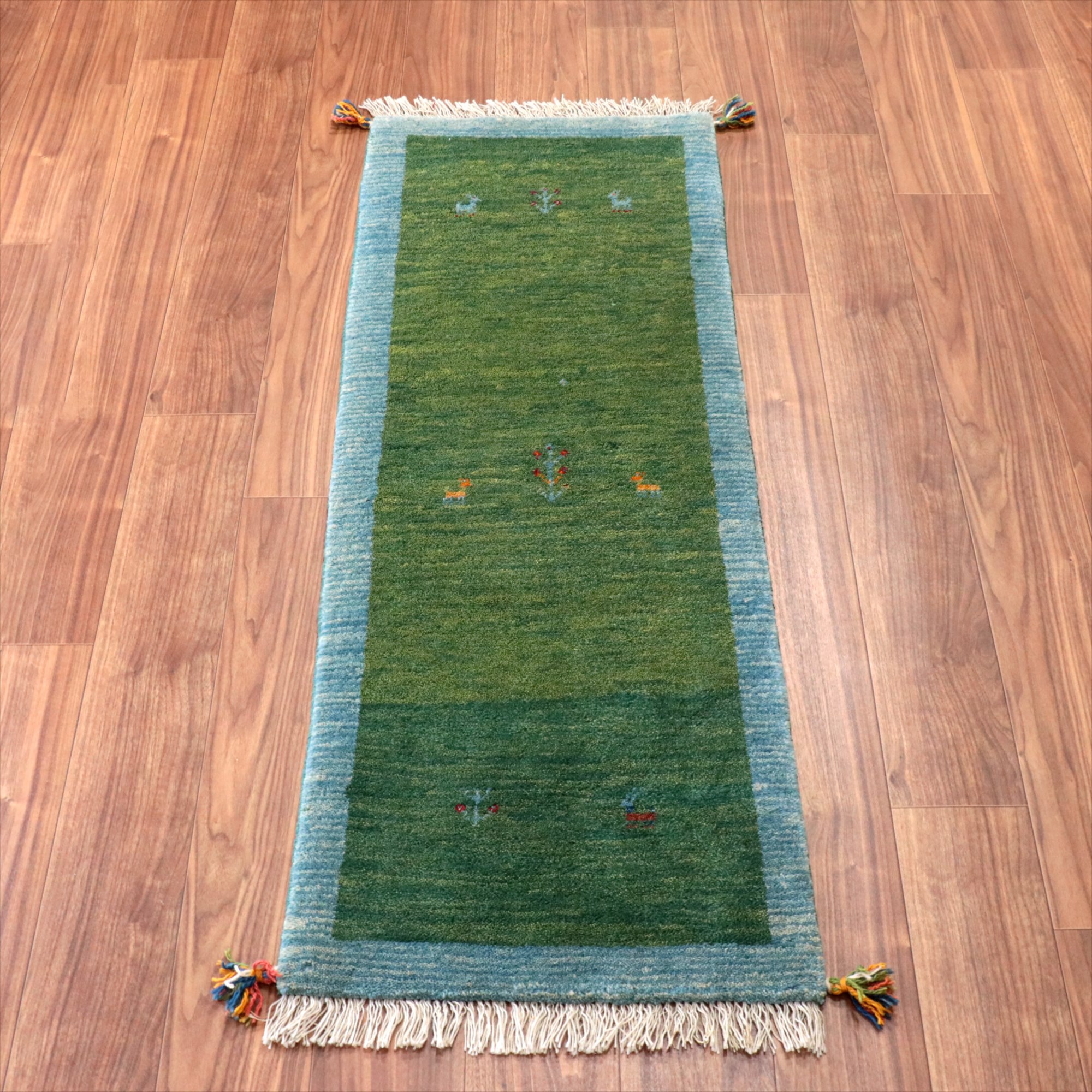 ギャッベ プリミティブで素朴なデザイン 150x53cm グリーン ランナー
