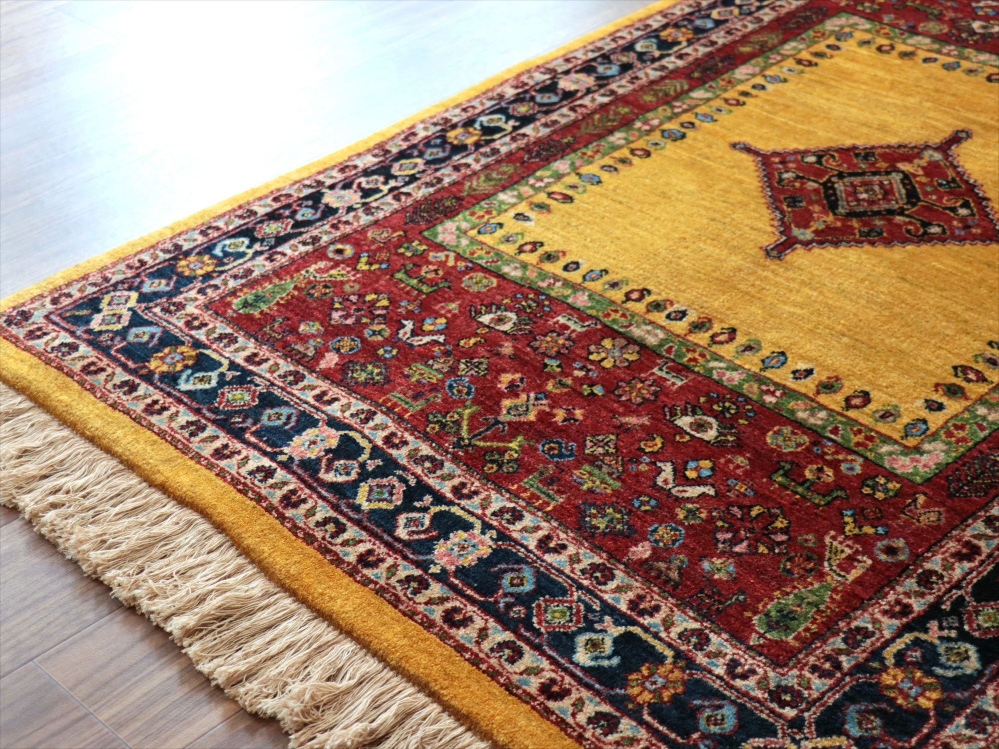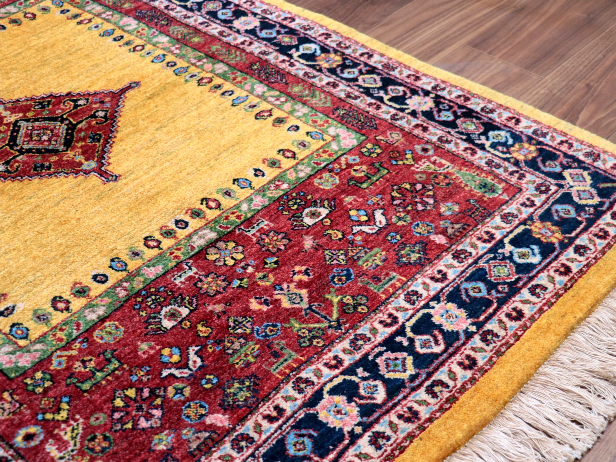 ギャッベ Luribaft/ルリバフ 152x102cm 緻密な織り イエロー レッド ネイビー クラシックデザイン メダリオン