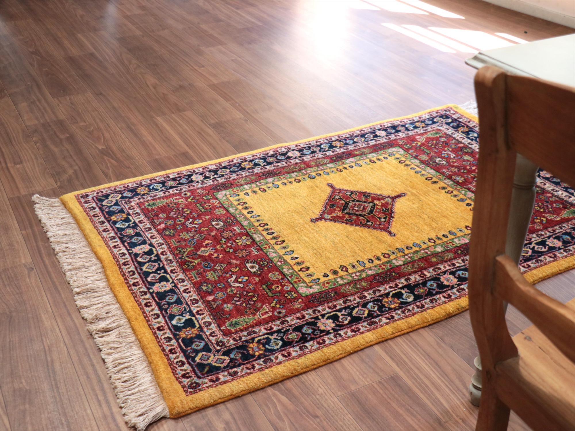 Key:Gabbeh, Tribal Rug, Hand knotted, wool, Natural dye, Shiraz, Fars, Quashkai, カシュカイ族, 伝統柄, クラシック, アンティークラグ, ヴィンテージラグ, トライバルラグ, ギャッベ, ギャベ, 細かい, ラグ, 手織り絨毯, 部族絨毯, ペルシャじゅうたん, 玄関マット, 廊下, ベッドサイド, ウール100%, イエロー, 黄色, 東京、中野区,ガラタバザール