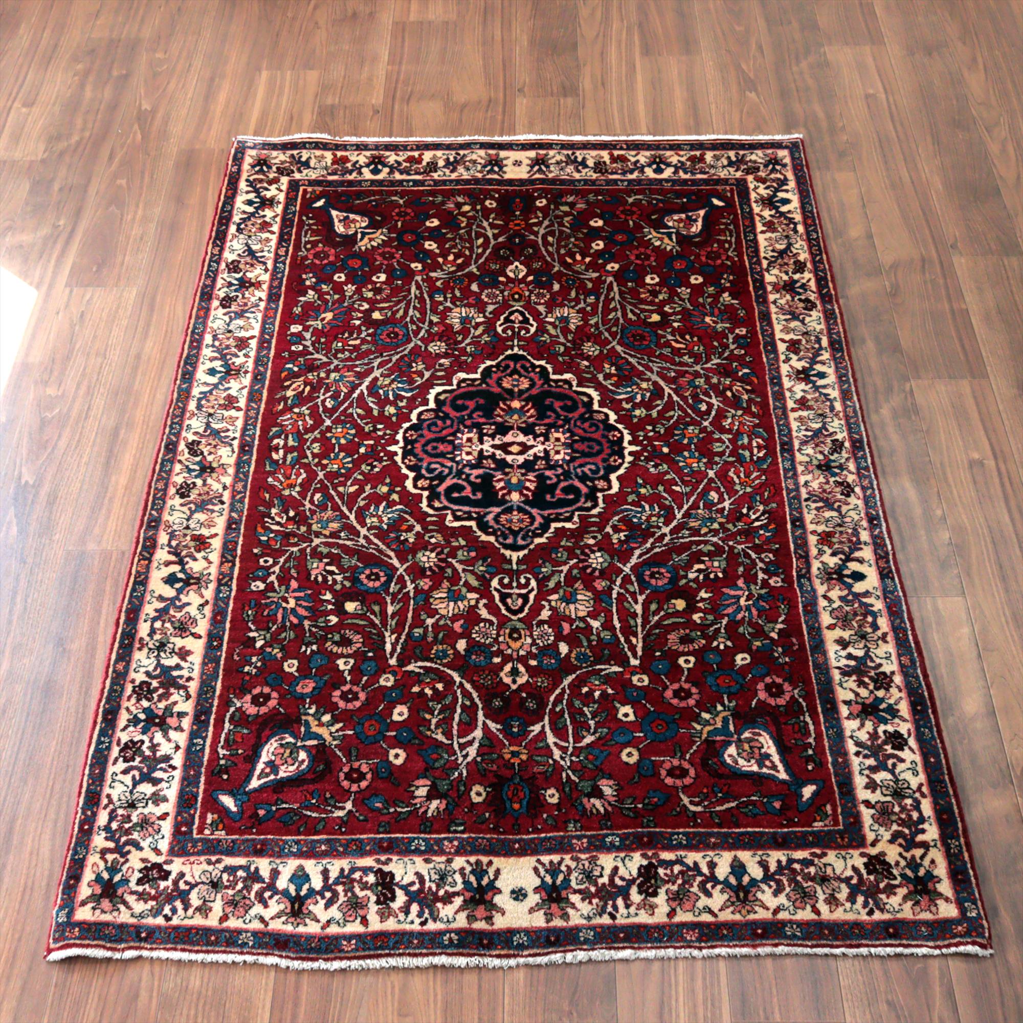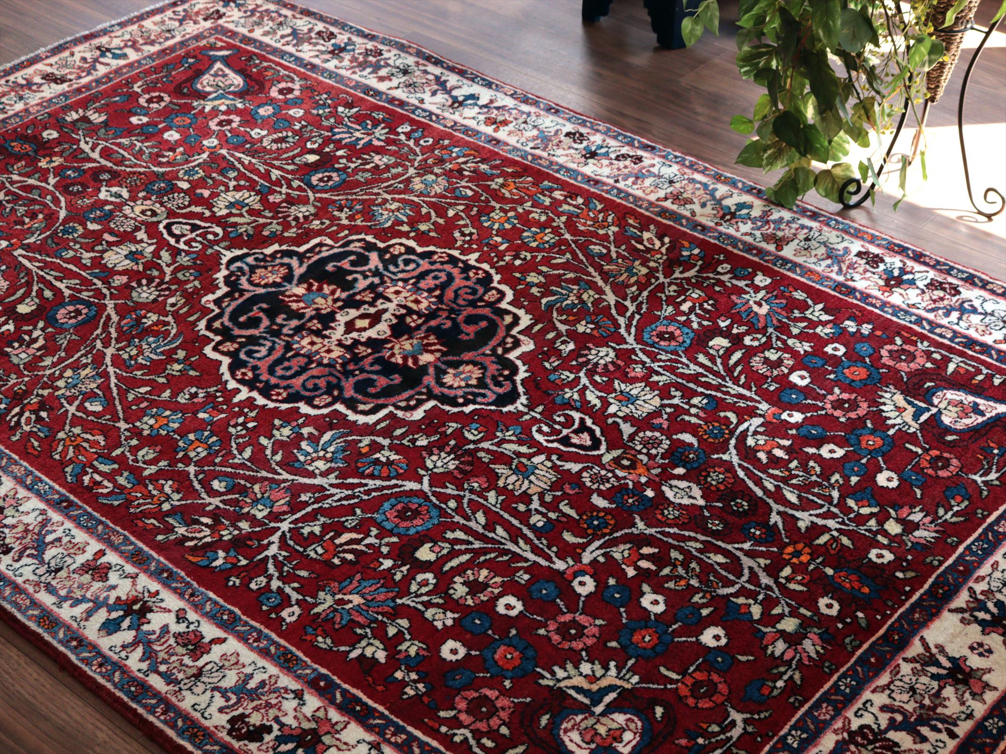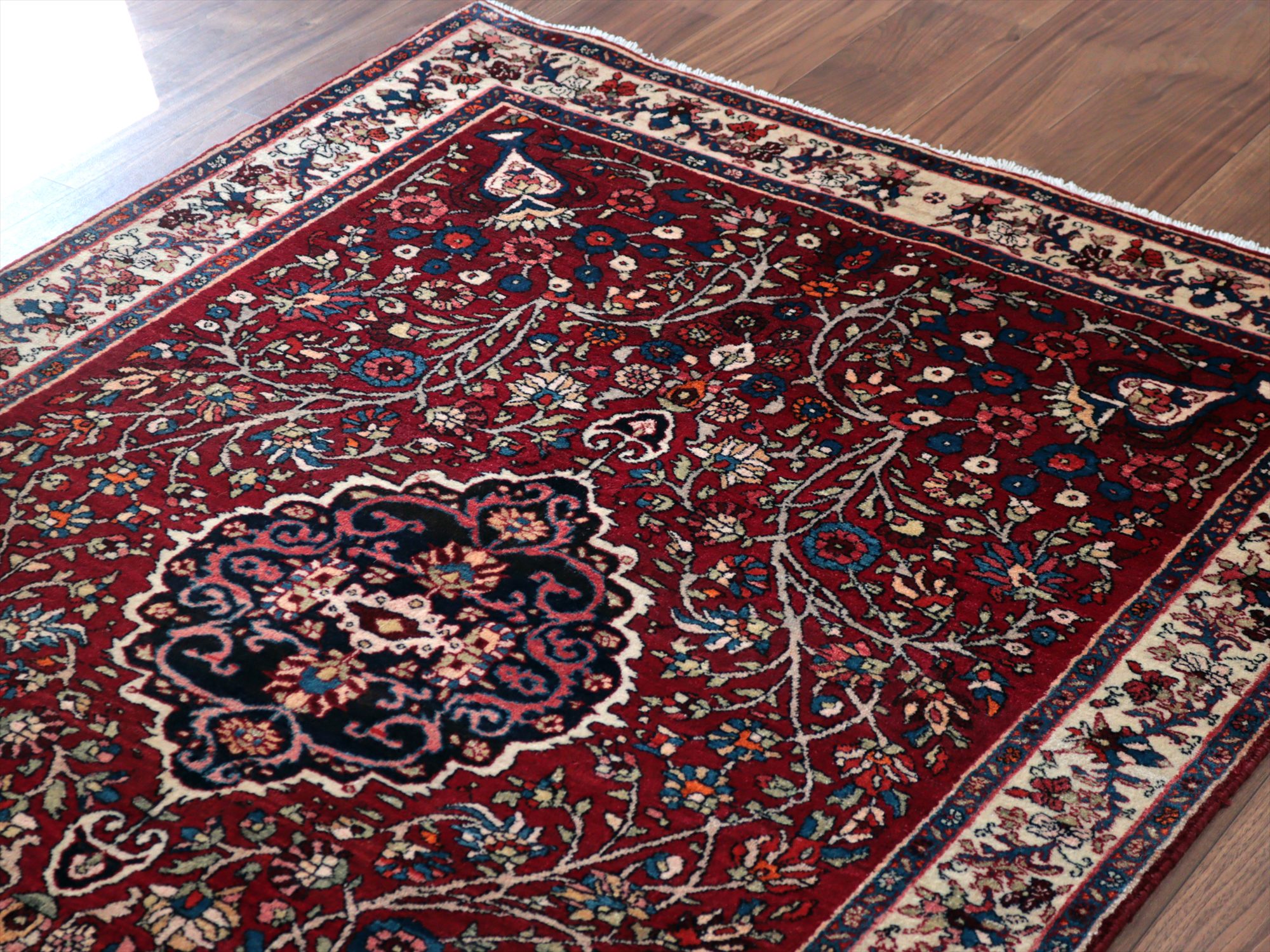 - ペルシャ絨毯 サーベ202×131cm 連なるフラワーデザイン 手織りラグ