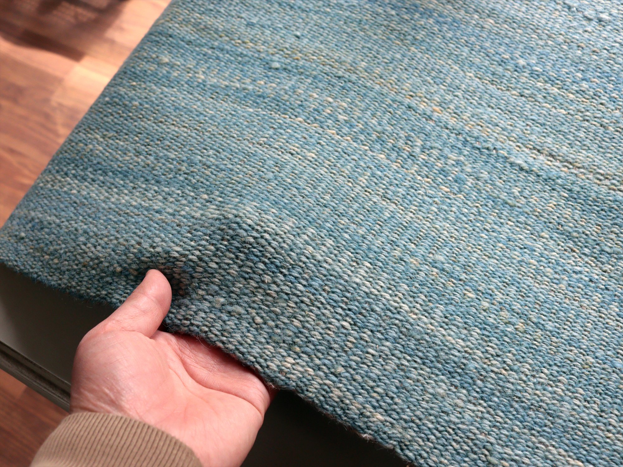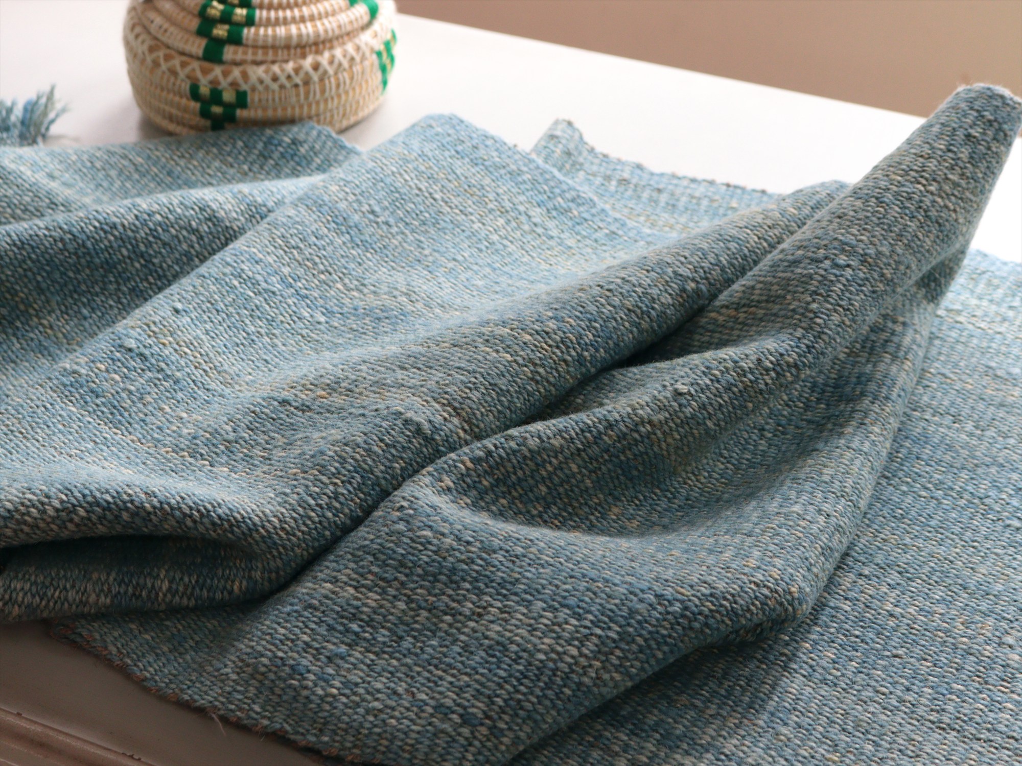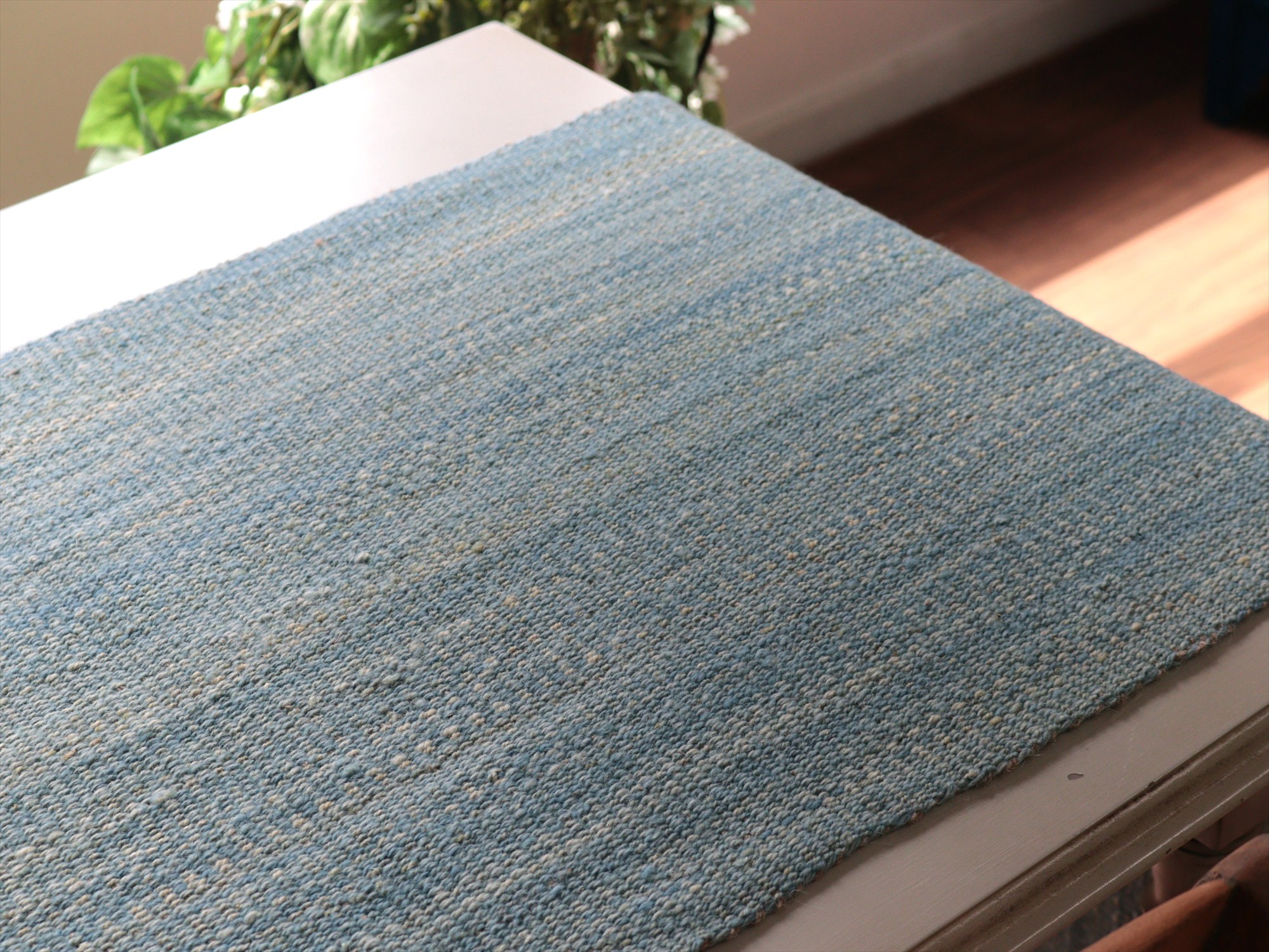 key:Turkish kilim, Natural color, monotone color, wool rug, Hand weaven, Handmade, キリム, キリムラグ, トルコキリム, 天然素材, ウール, ブルー, シンプル, mapKars, モチーフのないキリム