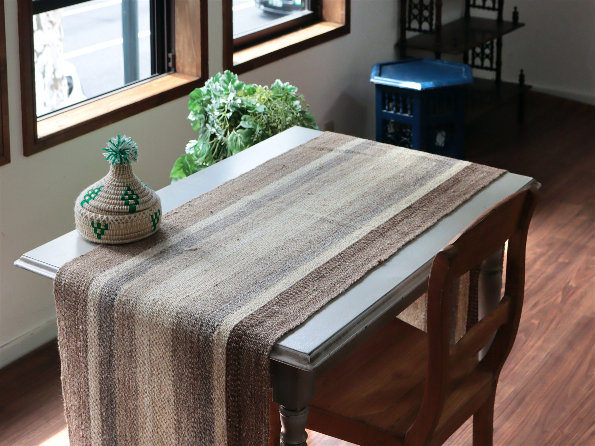 トルコの手織りキリム カルス194×49cm ブラウン&アイボリー ストライプ
