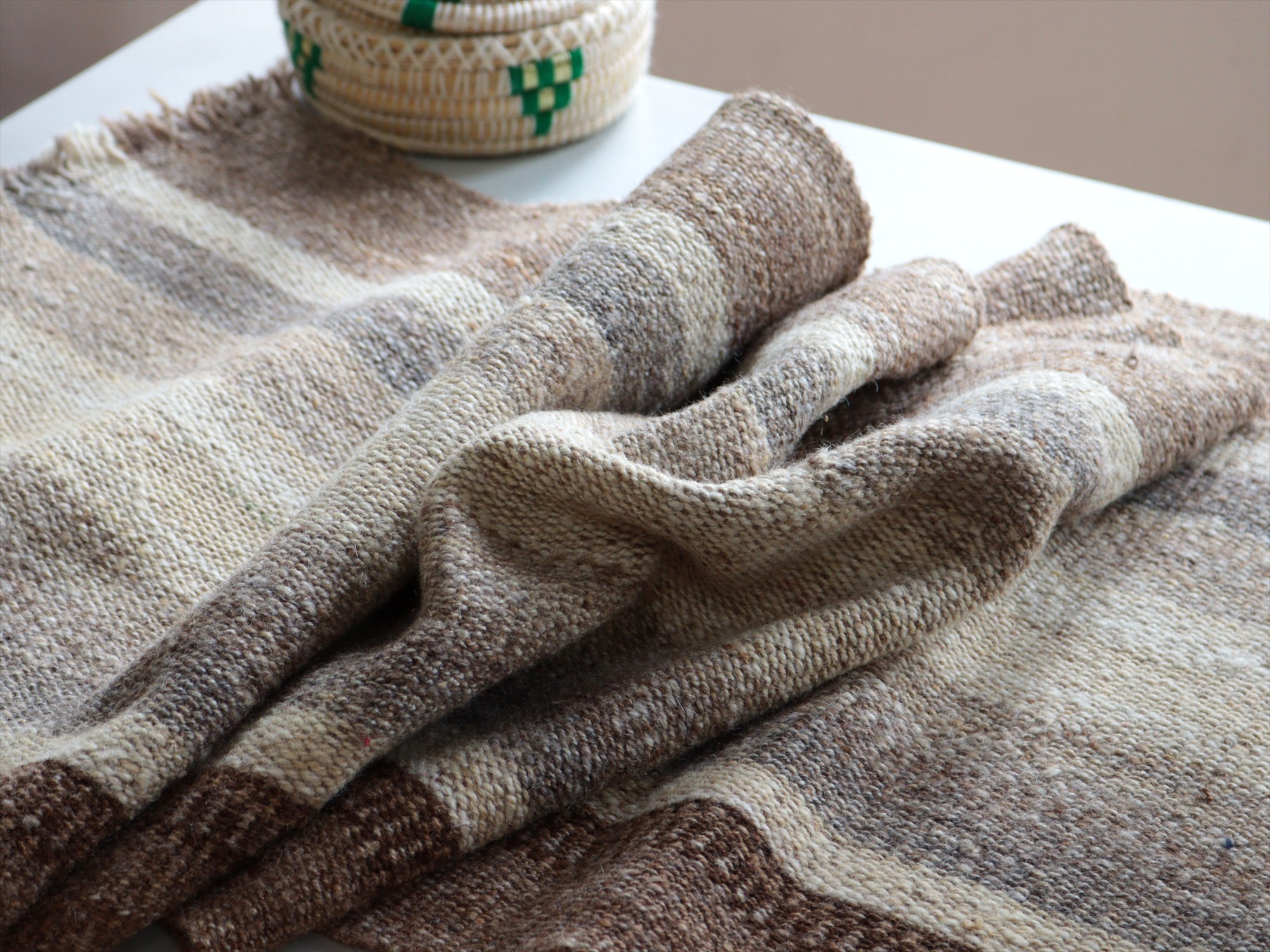 key:Turkish kilim, Natural color, monotone color, wool rug, Hand weaven, Handmade, キリム, キリムラグ, トルコキリム, 天然素材, ウール, ナチュラルカラー, ベージュ, アイボリー, ブラウン, シンプル, mapKars, モチーフのないキリム