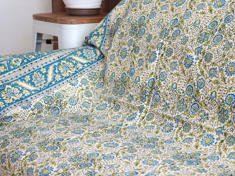 Key:コットン 染色 ブロックプリント 木版 捺染 伝統工芸 ペルシャブルー ペイズリー フリークロス マルチカバー ベッドスプレッド ベッドカバー ソファカバー カーテン タペストリー ファブリック インテリアファブリック クラフト インテリア ペルシャ ペルセポリス イラン 中東 シルクロード アジアン エスニック