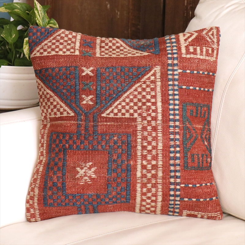 Key:Old Kilim, Kilim Cushion, Turkish Kilim, BOHO, Bohemian Decor, Vintage kilim, クッションカバー40cm, 40×40cm, オールドキリム, トルコ, ヴィンテージキリム, トライバルラグ, インテリア, クッション, クッションカバー, ピロー, ボヘミアンスタイル, BO-HO, ウール100%, 手織り, 一点もの, ガラタバザール