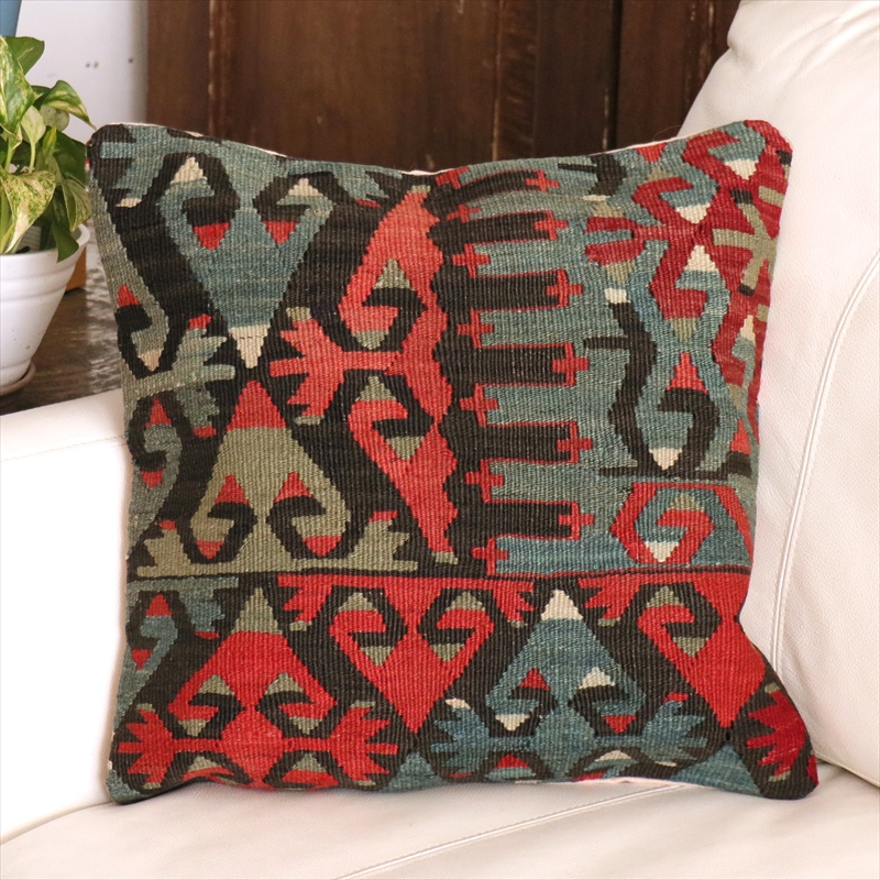Key:Old Kilim, Kilim Cushion, Turkish Kilim, BOHO, Bohemian Decor, Vintage kilim, クッションカバー40cm, 40×40cm, オールドキリム, トルコ, ヴィンテージキリム, トライバルラグ, インテリア, クッション, クッションカバー, ピロー, ボヘミアンスタイル, BO-HO, ウール100%, 手織り, 一点もの, ガラタバザール