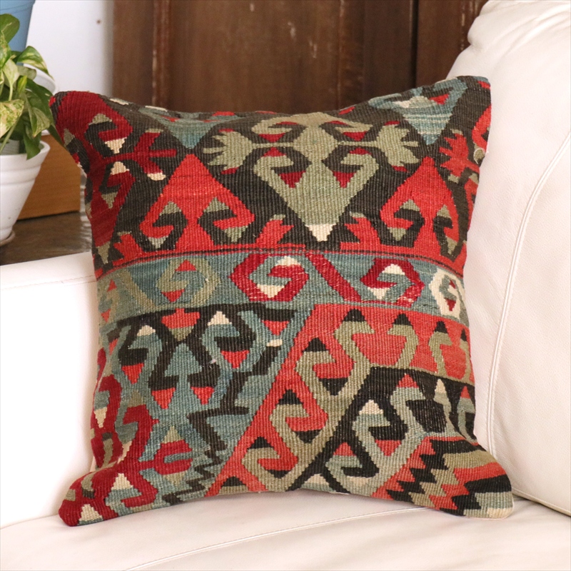 Key:Old Kilim, Kilim Cushion, Turkish Kilim, BOHO, Bohemian Decor, Vintage kilim, クッションカバー40cm, 40×40cm, オールドキリム, トルコ, ヴィンテージキリム, トライバルラグ, インテリア, クッション, クッションカバー, ピロー, ボヘミアンスタイル, BO-HO, ウール100%, 手織り, 一点もの, ガラタバザール