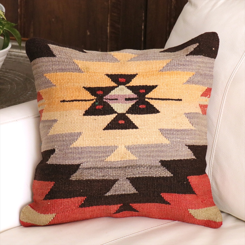 Key:Old Kilim, Kilim Cushion, Turkish Kilim, BOHO, Bohemian Decor, Vintage kilim, クッションカバー40cm, 40×40cm, オールドキリム, トルコ, ヴィンテージキリム, トライバルラグ, インテリア, クッション, クッションカバー, ピロー, ボヘミアンスタイル, BO-HO, ウール100%, 手織り, 一点もの, ガラタバザール