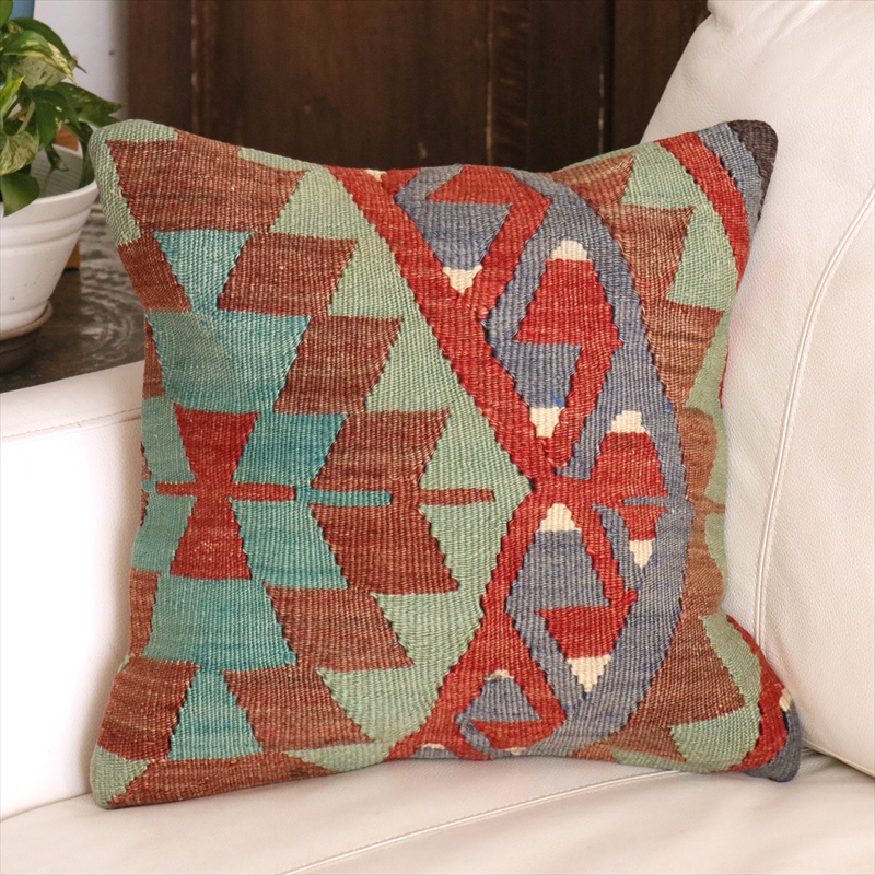 Key:Old Kilim, Kilim Cushion, Turkish Kilim, BOHO, Bohemian Decor, Vintage kilim, クッションカバー40cm, 40×40cm, オールドキリム, トルコ, ヴィンテージキリム, トライバルラグ, インテリア, クッション, クッションカバー, ピロー, ボヘミアンスタイル, BO-HO, ウール100%, 手織り, 一点もの, ガラタバザール