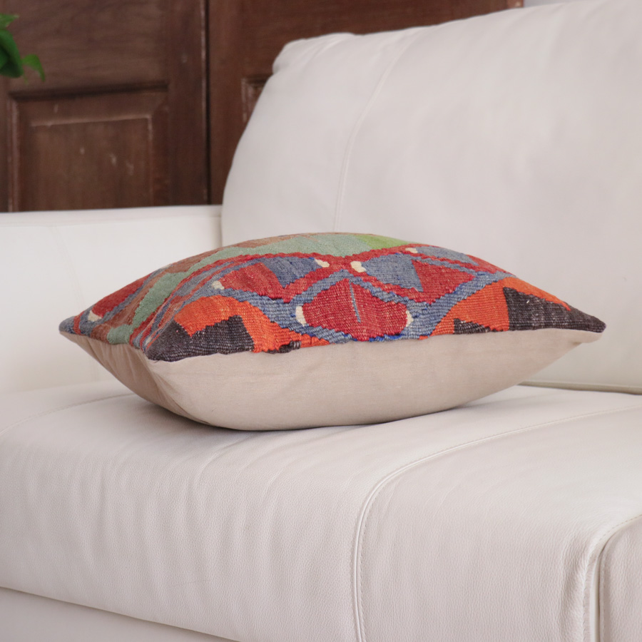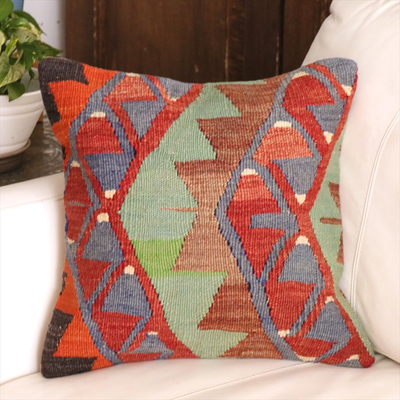 Key:Old Kilim, Kilim Cushion, Turkish Kilim, BOHO, Bohemian Decor, Vintage kilim, クッションカバー40cm, 40×40cm, オールドキリム, トルコ, ヴィンテージキリム, トライバルラグ, インテリア, クッション, クッションカバー, ピロー, ボヘミアンスタイル, BO-HO, ウール100%, 手織り, 一点もの, ガラタバザール