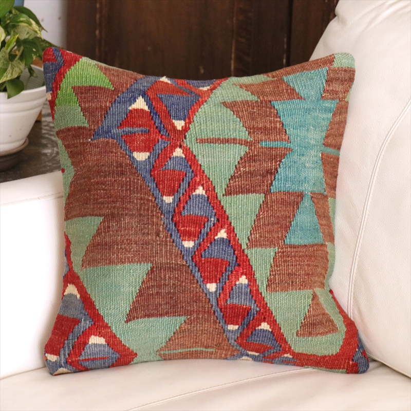 Key:Old Kilim, Kilim Cushion, Turkish Kilim, BOHO, Bohemian Decor, Vintage kilim, クッションカバー40cm, 40×40cm, オールドキリム, トルコ, ヴィンテージキリム, トライバルラグ, インテリア, クッション, クッションカバー, ピロー, ボヘミアンスタイル, BO-HO, ウール100%, 手織り, 一点もの, ガラタバザール