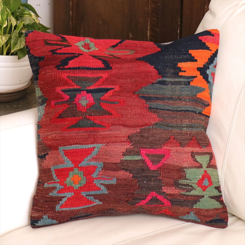 Key:Old Kilim, Kilim Cushion, Turkish Kilim, BOHO, Bohemian Decor, Vintage kilim, クッションカバー40cm, 40×40cm, オールドキリム, トルコ, ヴィンテージキリム, トライバルラグ, インテリア, クッション, クッションカバー, ピロー, ボヘミアンスタイル, BO-HO, ウール100%, 手織り, 一点もの, ガラタバザール
