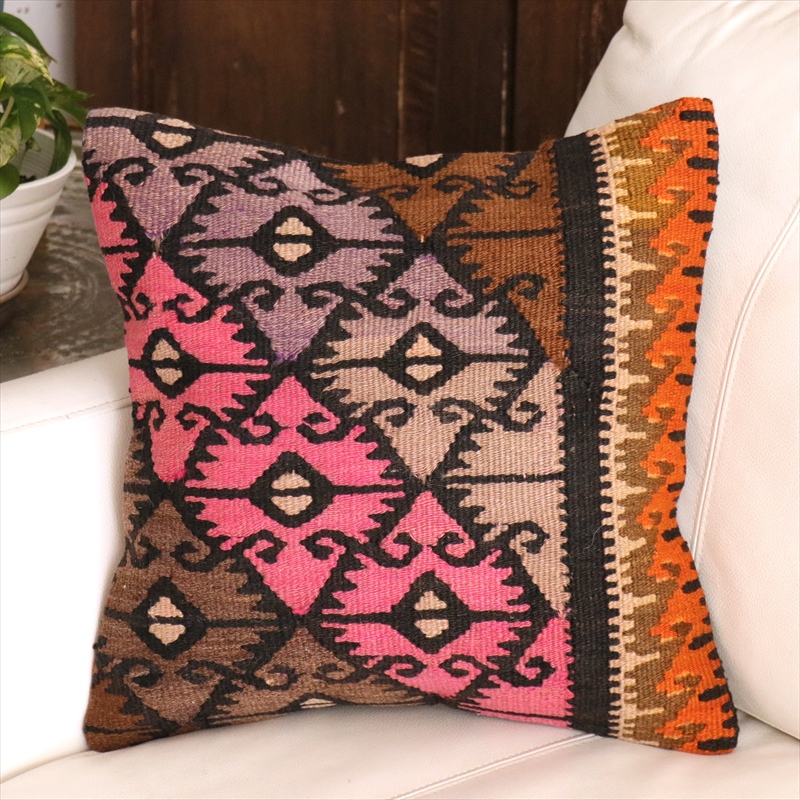 Key:Old Kilim, Kilim Cushion, Turkish Kilim, BOHO, Bohemian Decor, Vintage kilim, クッションカバー40cm, 40×40cm, オールドキリム, トルコ, ヴィンテージキリム, トライバルラグ, インテリア, クッション, クッションカバー, ピロー, ボヘミアンスタイル, BO-HO, ウール100%, 手織り, 一点もの, ガラタバザール
