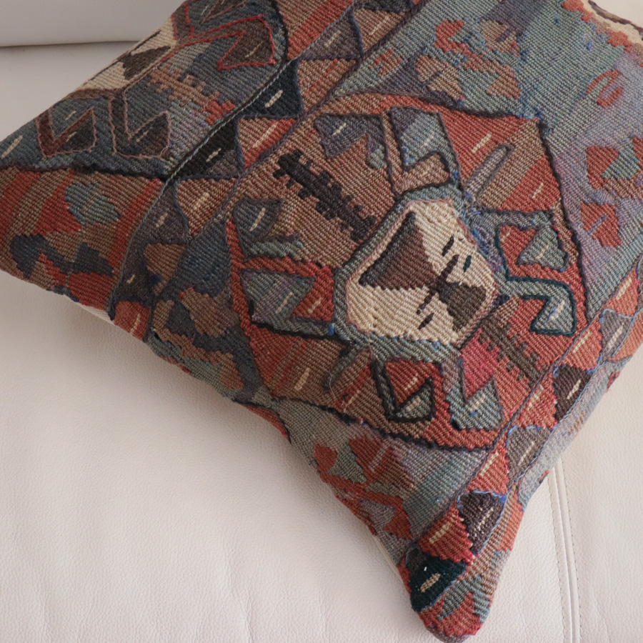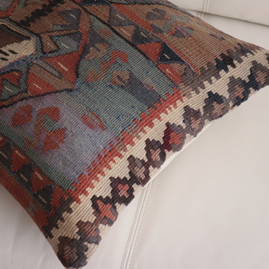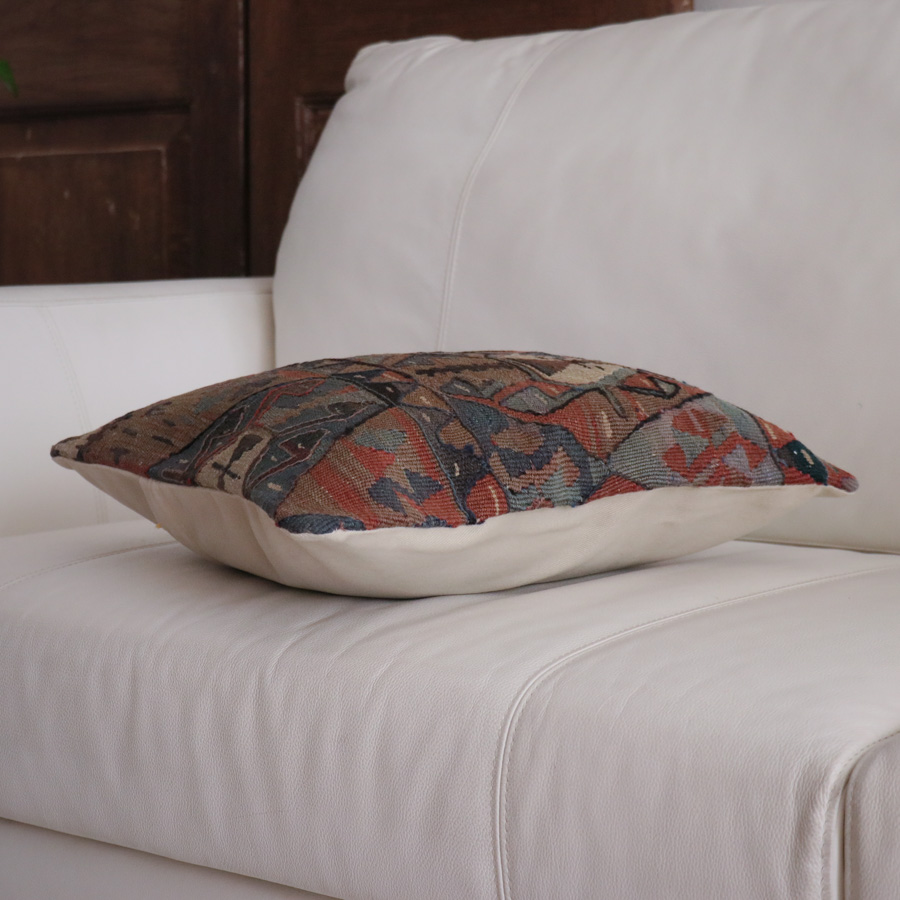 Key:Old Kilim, Kilim Cushion, Turkish Kilim, BOHO, Bohemian Decor, Vintage kilim, クッションカバー40cm, 40×40cm, オールドキリム, トルコ, ヴィンテージキリム, トライバルラグ, インテリア, クッション, クッションカバー, ピロー, ボヘミアンスタイル, BO-HO, ウール100%, 手織り, 一点もの, ガラタバザール