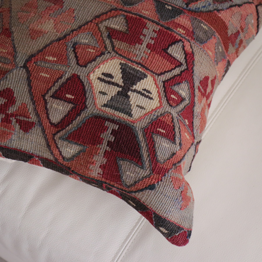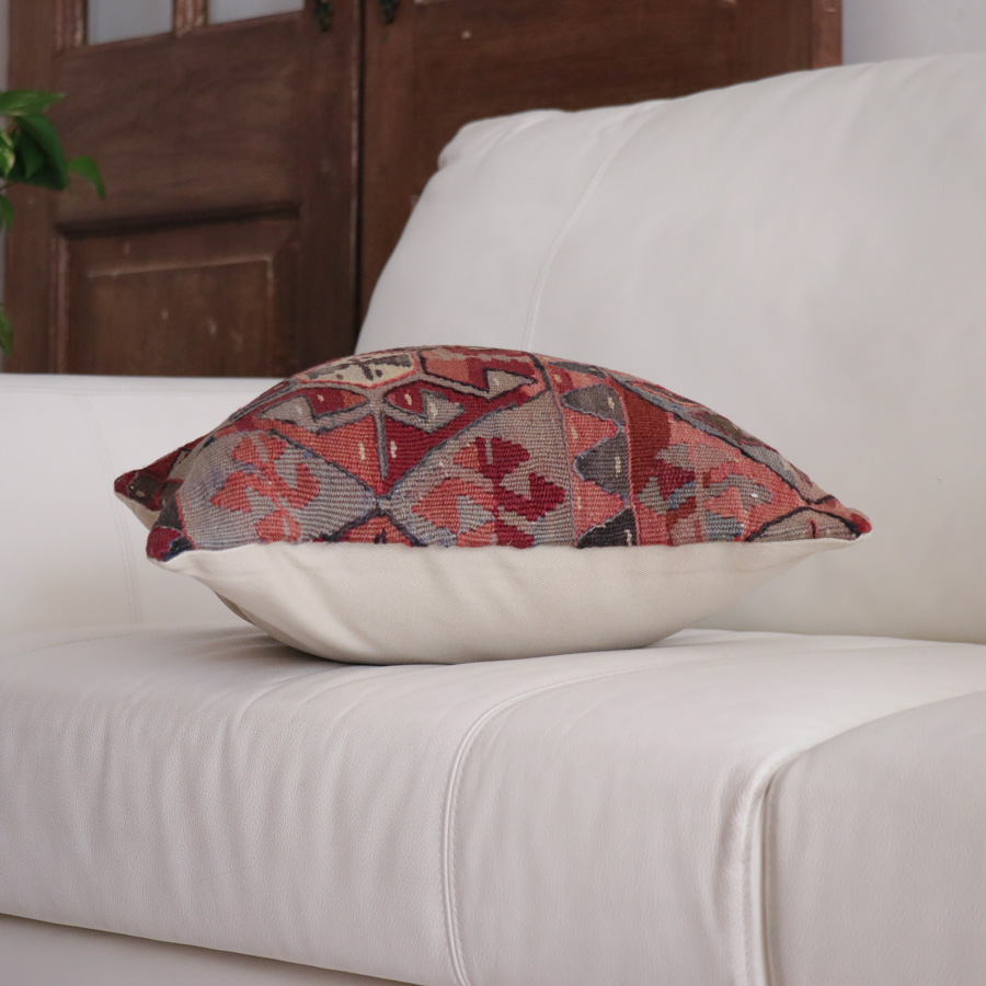 Key:Old Kilim, Kilim Cushion, Turkish Kilim, BOHO, Bohemian Decor, Vintage kilim, クッションカバー40cm, 40×40cm, オールドキリム, トルコ, ヴィンテージキリム, トライバルラグ, インテリア, クッション, クッションカバー, ピロー, ボヘミアンスタイル, BO-HO, ウール100%, 手織り, 一点もの, ガラタバザール