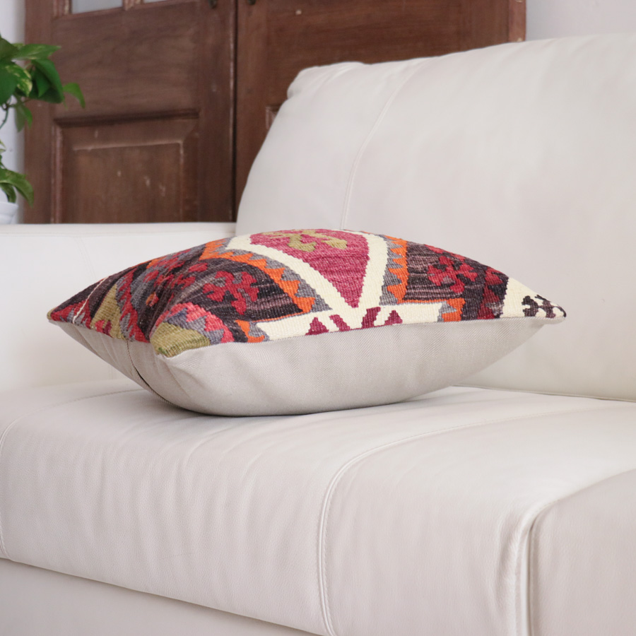 Key:Old Kilim, Kilim Cushion, Turkish Kilim, BOHO, Bohemian Decor, Vintage kilim, クッションカバー40cm, 40×40cm, オールドキリム, トルコ, ヴィンテージキリム, トライバルラグ, インテリア, クッション, クッションカバー, ピロー, ボヘミアンスタイル, BO-HO, ウール100%, 手織り, 一点もの, ガラタバザール
