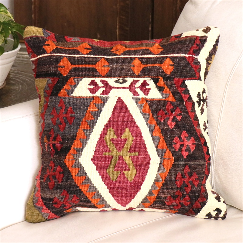 オールドキリム クッションカバー 40cm角 40×40cm エミルダア エリベリンデモチーフ トルコキリム