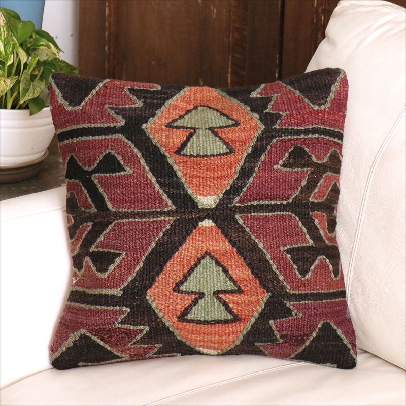 Key:Old Kilim, Kilim Cushion, Turkish Kilim, BOHO, Bohemian Decor, Vintage kilim, クッションカバー40cm, 40×40cm, オールドキリム, トルコ, ヴィンテージキリム, トライバルラグ, インテリア, クッション, クッションカバー, ピロー, ボヘミアンスタイル, BO-HO, ウール100%, 手織り, 一点もの, ガラタバザール